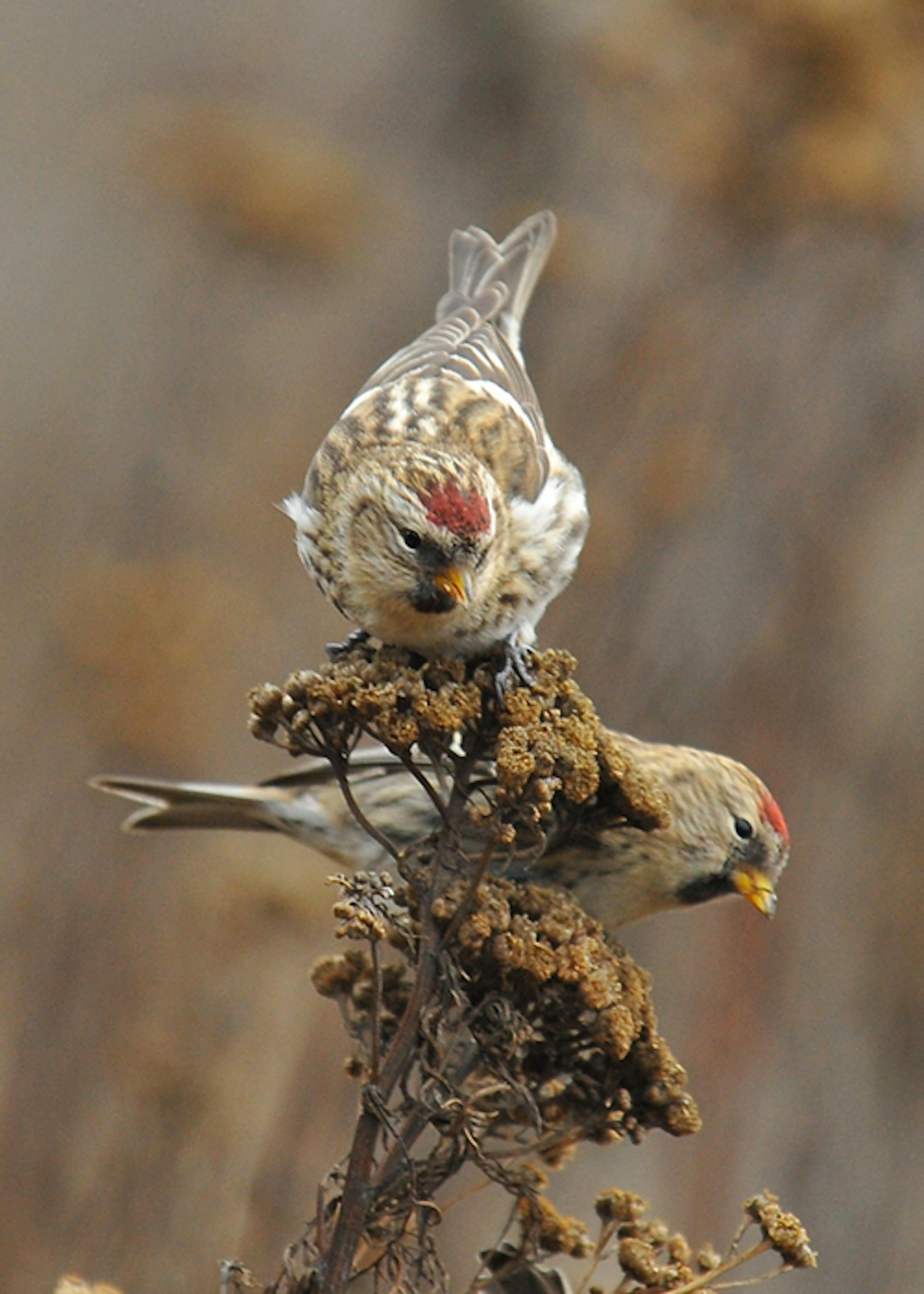 Common Redpolls also are to be expected at Minnesota feeders. They favor niger thistle seeds. Watch for Hoary Redpolls in the visiting flocks.