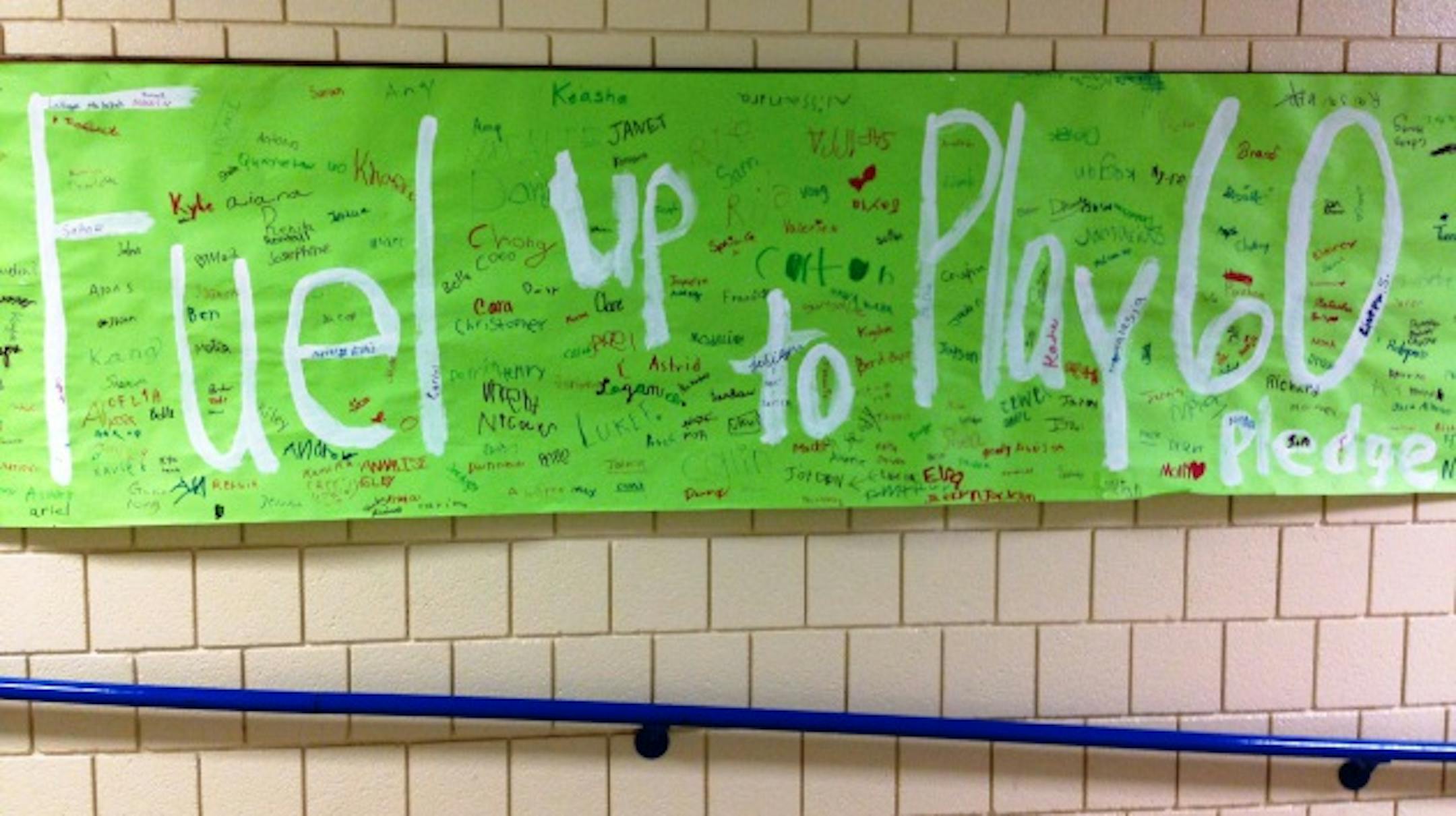 The entire school also signed a pledge to get active for 60 minutes of activity each day. This and other activities are planned by the school's Wellness Council, a version of a student council that meets weekly with 23 students.