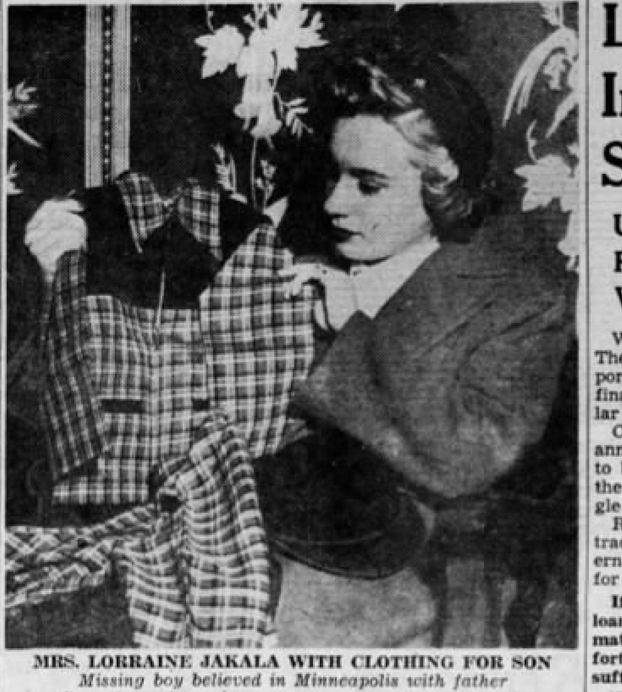 "For six weeks, [Lorraine] tried vainly to locate her husband and son," read a story in the Minneapolis Tribune, published in October 1950, after she tracked Joseph to his mom's house in Minneapolis. By the time Lorraine hired a lawyer and served him with a court order, they'd disappeared again.