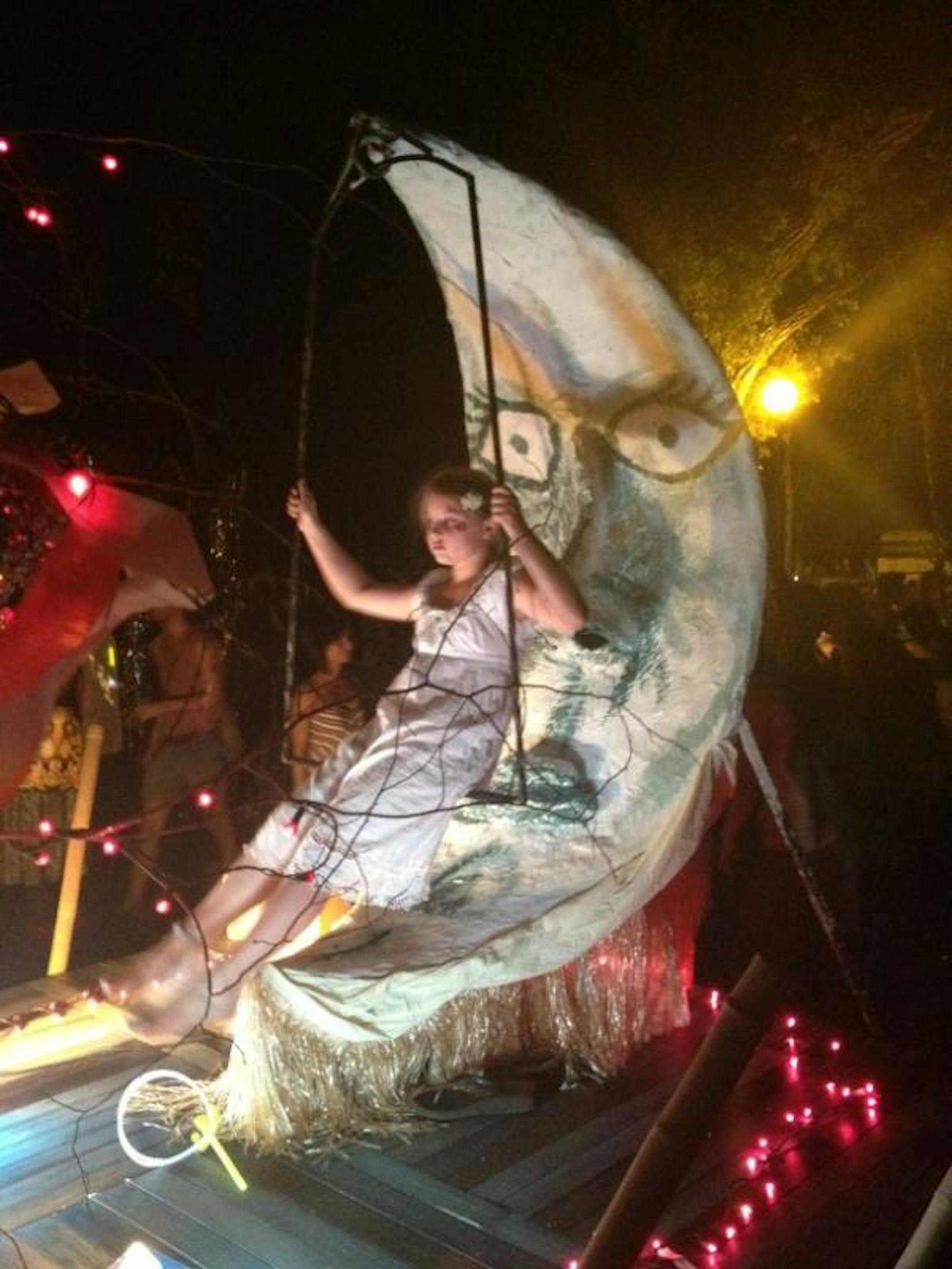 I had a similar feeling at this year's event. I checked my mobile app and headed to river near the Guthrie to catch the promised "Psychedelic Parade" across the Stone Arch Bridge. We saw it in the distance, a bobbing tentlike structure moving slowly over the bridge. Because of the heavy crowd, we didn't catch up to it until it was nearly at the other end of the bridge. There we discovered a colorful hand-pushed float with a two-headed octopus, a sculpted moon and some trapeze swingers.