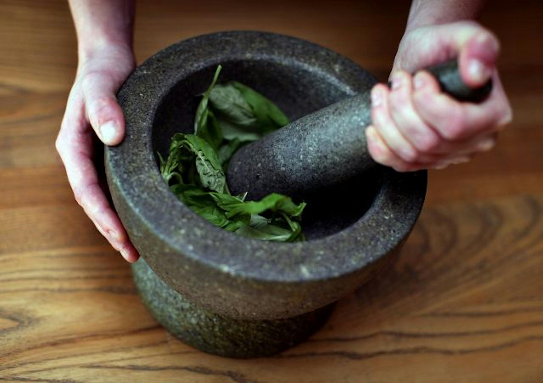 But nothing we've invented in the past 100 years can produce a better-tasting sauce than the ancient-looking granite pair, the mortar and the pestle, squatting on your countertop. Shiny electric machines may do it quicker, but a hollowed-out rock and its blunt pounder do it better.
