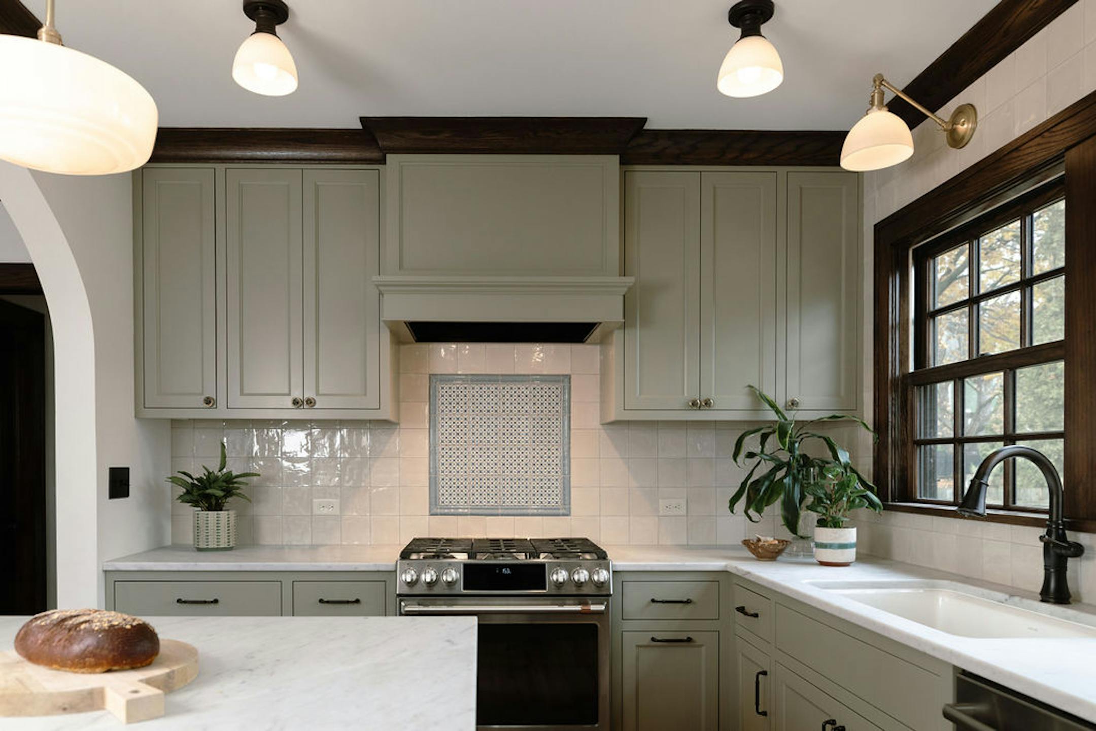 At 2,186 square feet, the house was the smallest on the block, with a small kitchen to match. However, charming archways and architectural details made up for the lack.