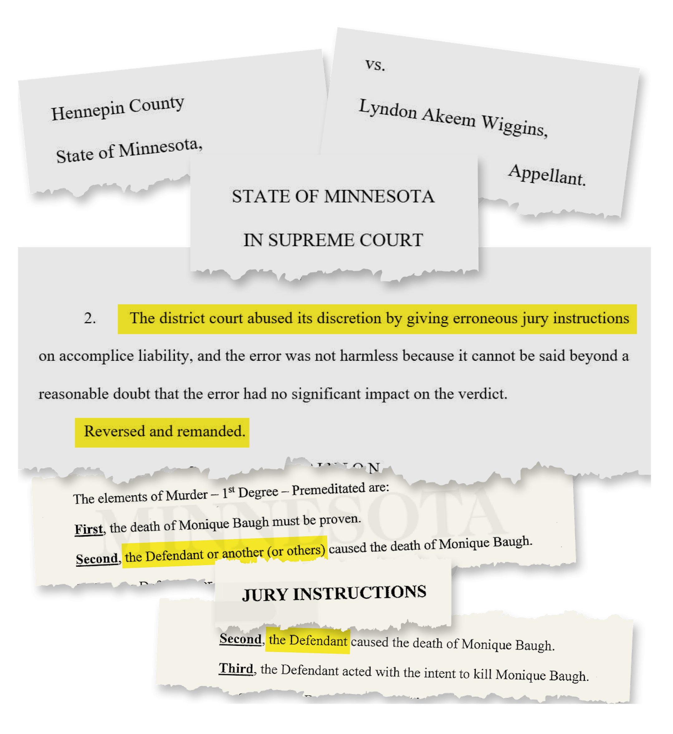 Lyndon Wiggins, who was serving life in prison before his 2022 murder convictions were thrown out by the Minnesota Supreme Court over faulty jury instructions, is back in Hennepin County District Court accused of playing a key role in the execution of 28-year-old Monique Baugh.