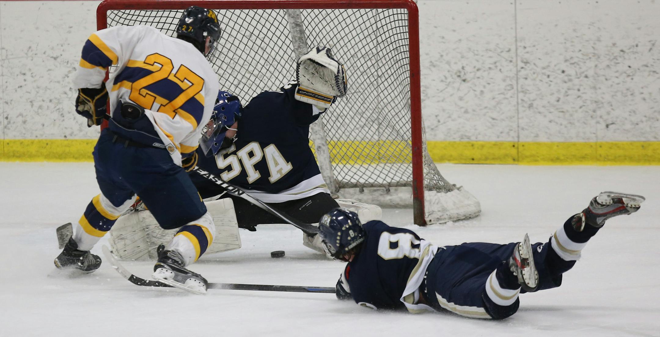 St. Paul Academy pulled its goalie late in the third period, leading to an empty-net goal from Jared Fladebo.