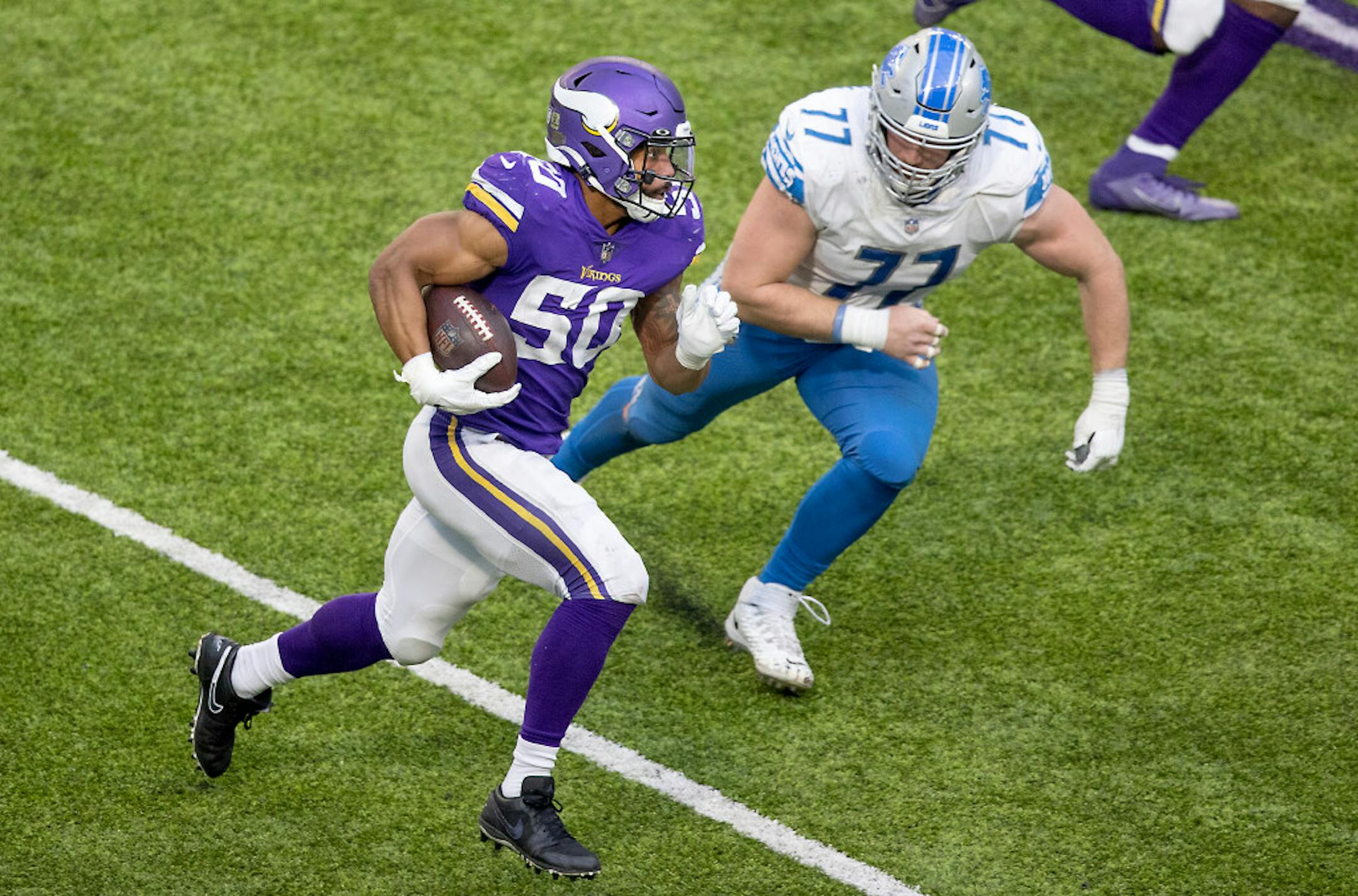 AK: Eric Wilson has played every defensive snap since stepping in for Anthony Barr in Week 2's first half at Indianapolis. The fourth-year linebacker has been one of the pleasant developments, flashing with big plays — three interceptions, three sacks and a forced fumble — and showing some consistency in coverage. He isn't the same disruptive run stopper as Eric Kendricks, but Wilson is showing he can be a starter, whether in Minnesota or elsewhere. With this kind of year, he should overshoot a contract like ex-Bears linebacker Nick Kwiatkoski, who got $7 million per year last offseason from Las Vegas. Maybe he'd aim as high as eight figures? Ex-Packers linebacker Blake Martinez just got $10 million per year from the Giants. Wilson is the type of player and person the Vikings prioritize keeping long-term. But can they give a third substantial contract at linebacker, especially as defenses mostly play three cornerbacks and two linebackers in today's NFL? Perhaps if they move on from Anthony Barr, but right now I don't see that happening.