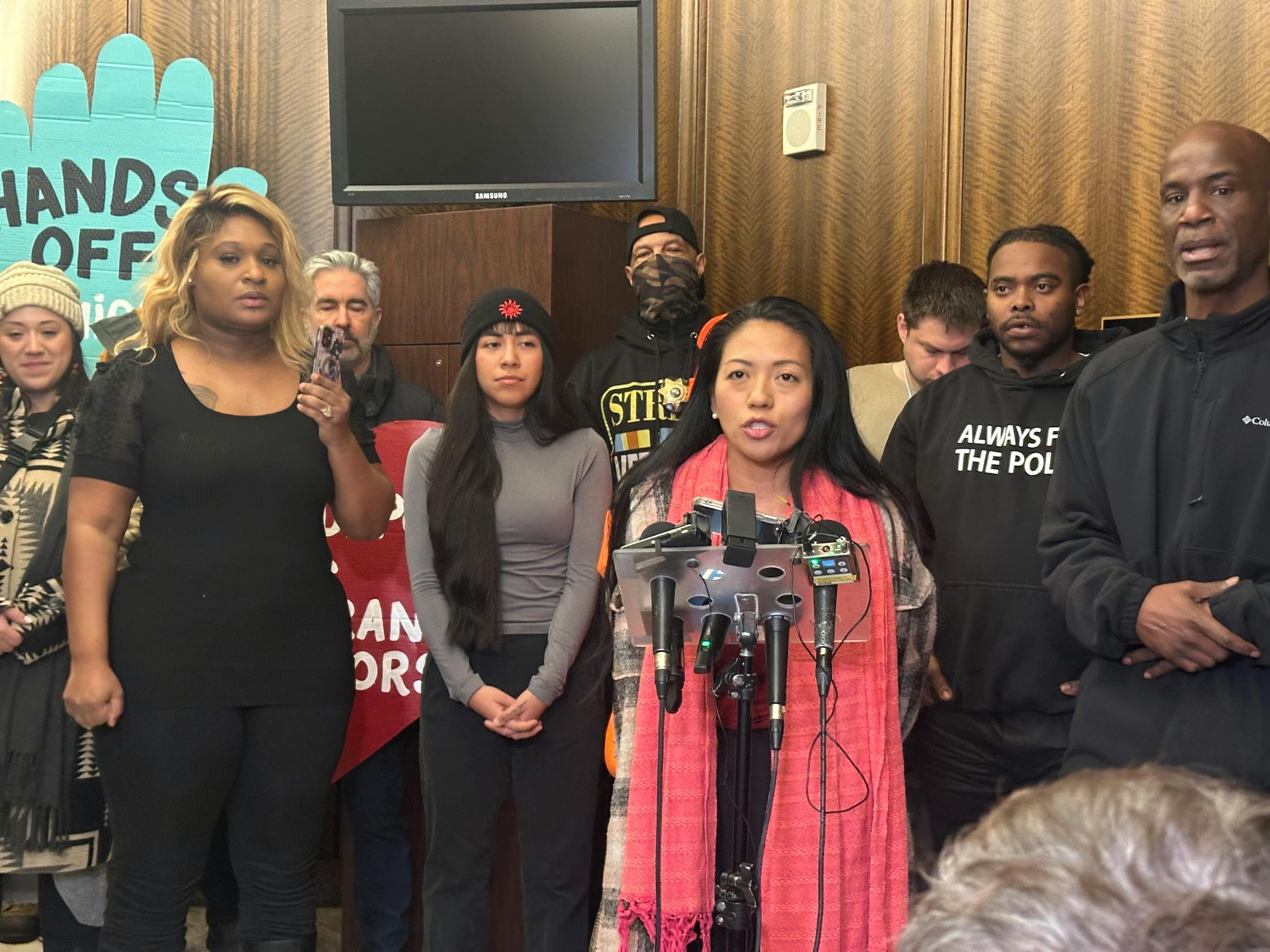 Quiroz was speaking alongside a crowd of police accountability activists, protesters and observers from the raid at a Monday afternoon news conference organized by Communities United Against Police Brutality (CUAPB). The speakers denounced St. Paul police for using chemical irritants and rubber bullets on protesters and media members at the raid, and they decried the arrest of Lopez-Suazo, who was not the raid’s initial target.