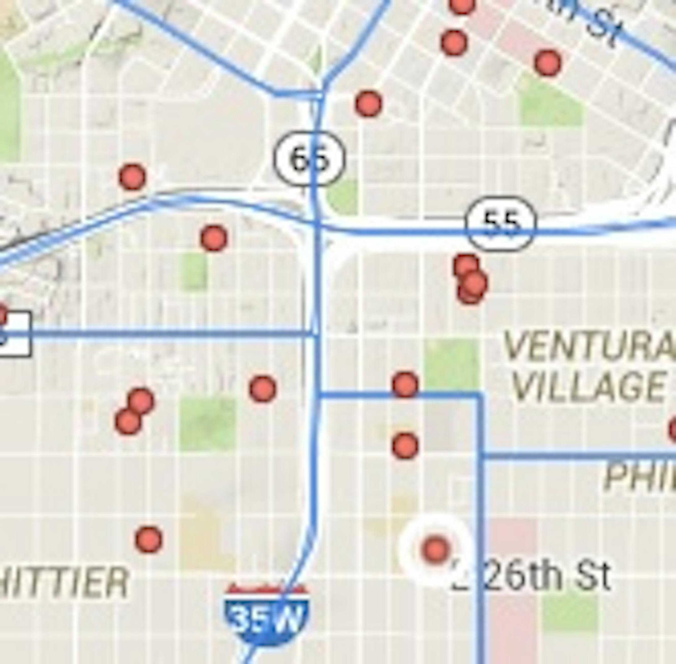 Below is a map of all facilities licensed to treat chemical dependency in the state, according to the Department of Human Services. The largest cluster of them is in six neighborhoods surrounding the intersection of Interstates 35 and 94.