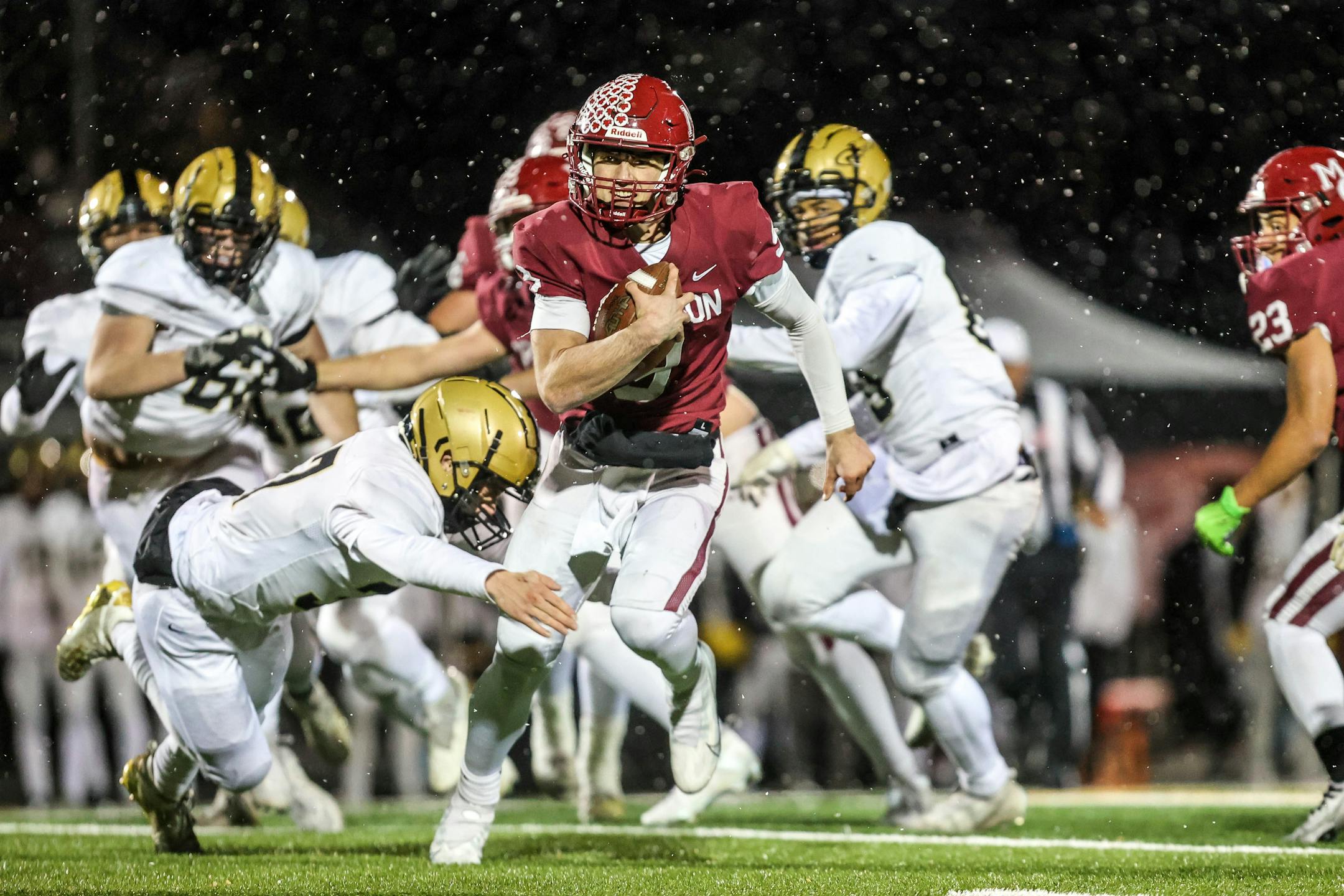 The undefeated Crimson, ranked No. 1 in Class 6A for most of the season, barged out to a 21-0 first-half lead on a touchdown by Tanner Albeck and two more by Charlie Rausch. It looked like they were headed to another double-digit victory.