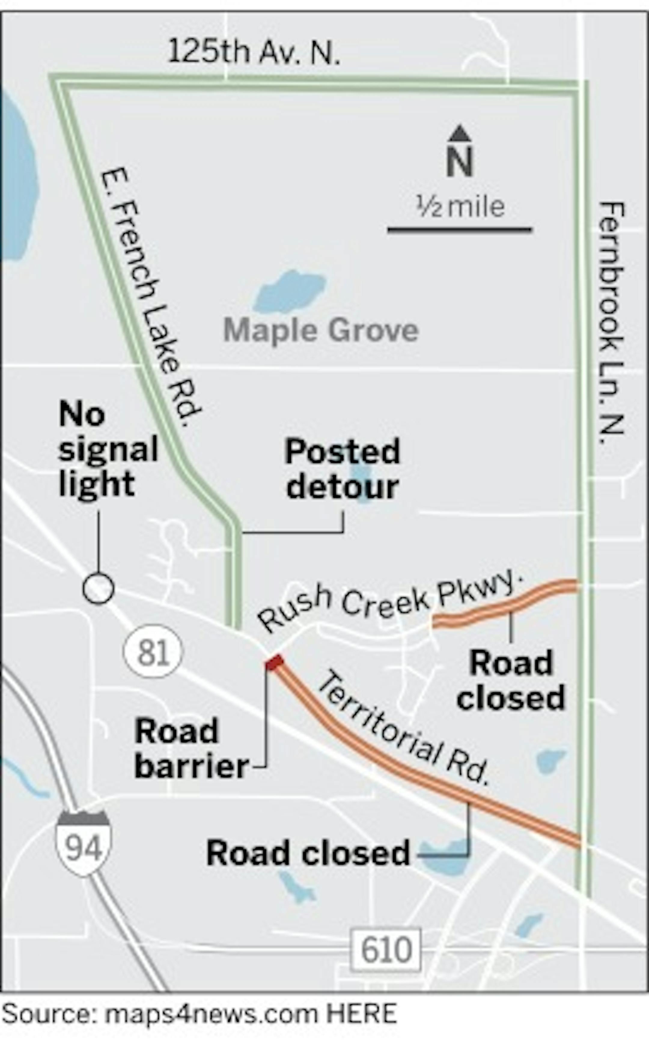 Territorial Road in Maple Grove isn't under construction, but it's closed anyway — and not just with signs but with concrete barricades blocking the way.