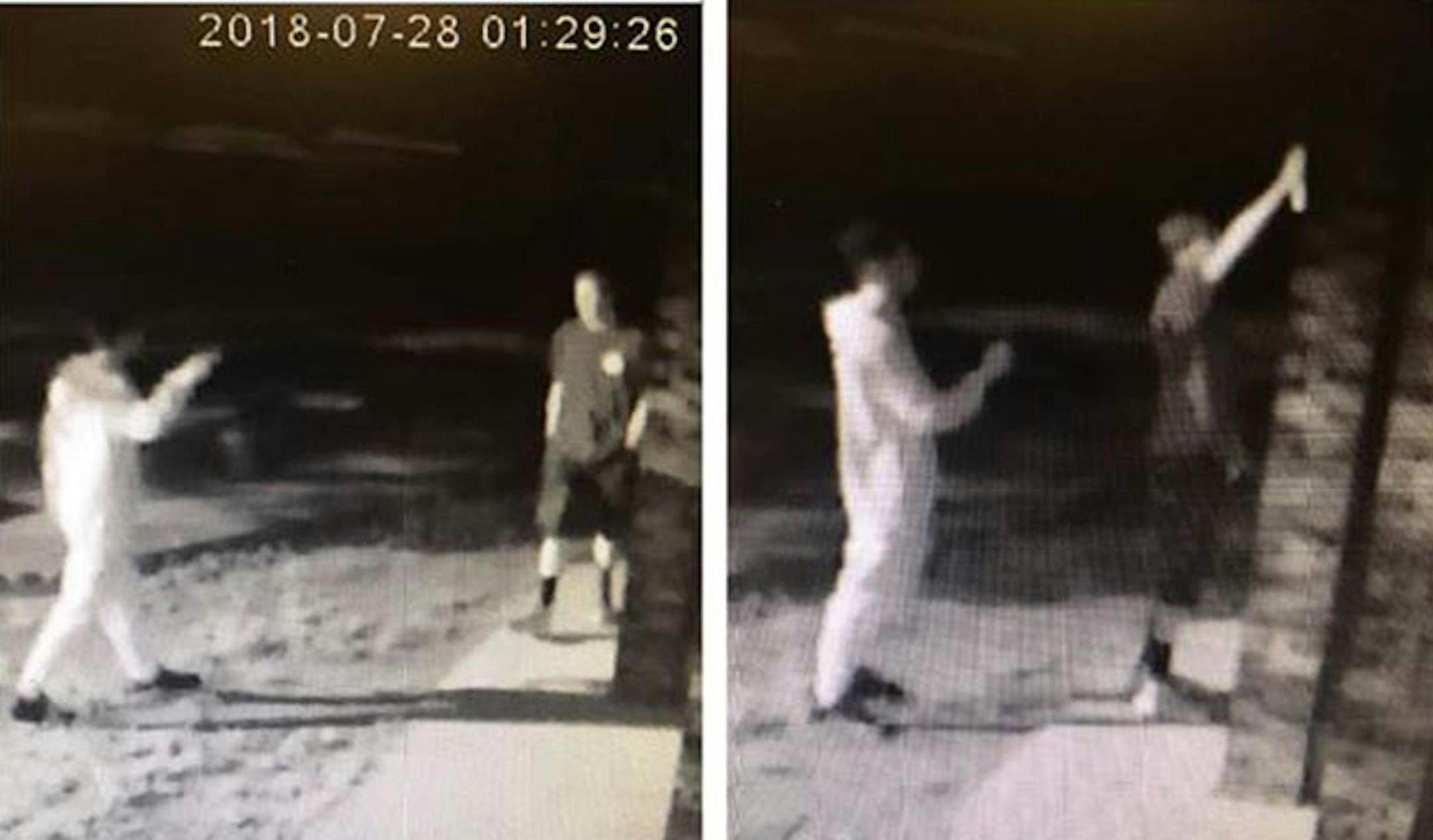 Maplewood police are looking for two suspects caught on camera spray-painting the back of the mosque during the early morning hours of July 29.