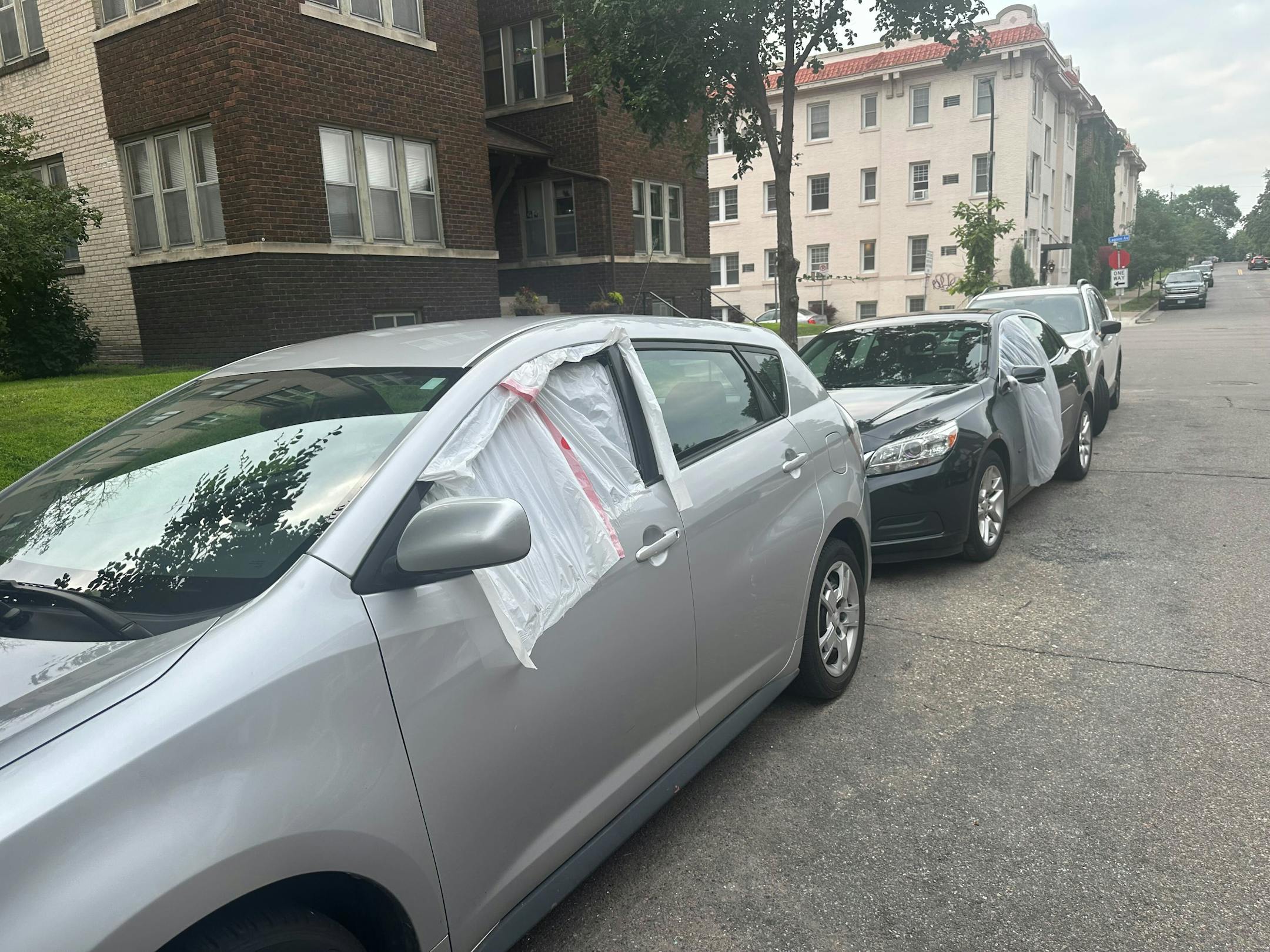 “Several vehicles on the street and in driveways were hit/damaged,” read one police report. Another report said a resident reported to police that “all vehicles parked on Linden Hills had windows broken.”