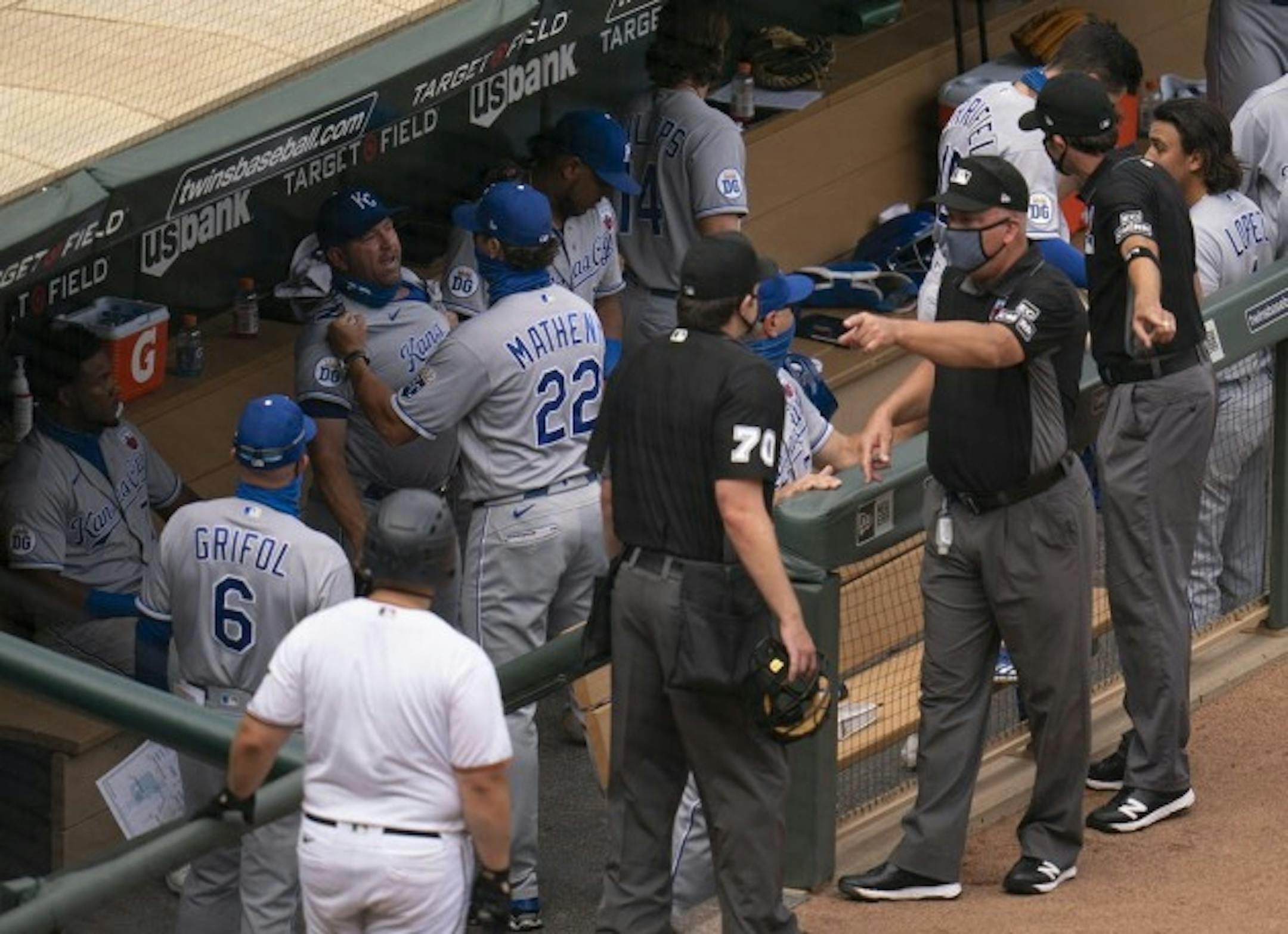 The Kansas City Star reported Romo yelled "keep talking" at the Royals dugout. Kansas City manager Mike Matheny said, "We can't take the emotion out of it -- either side -- but it's got to be under control, too. I think that was the frustration -- (when) the umpires see that stuff, they need to jump on it and get it figured out and cancel it before it gets out of hand, or else it'll get out of hand."