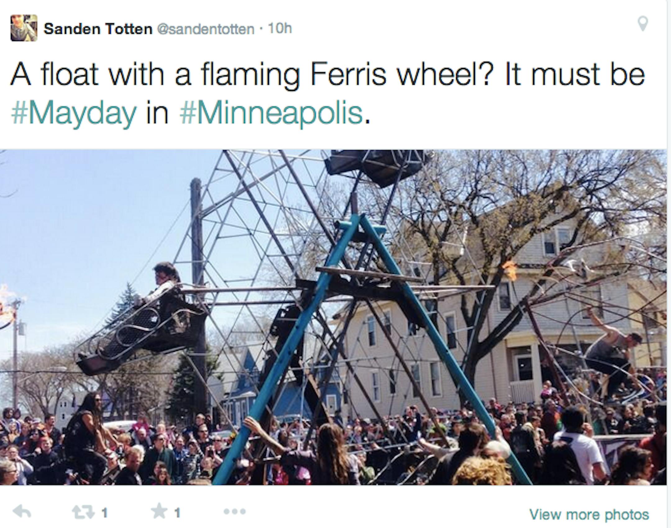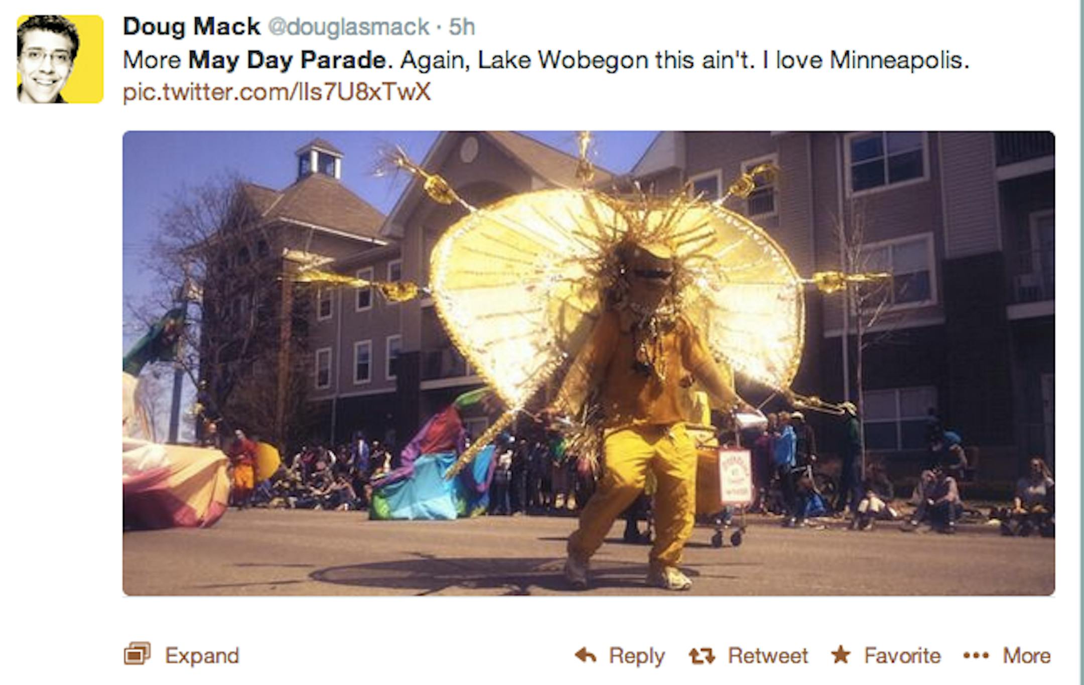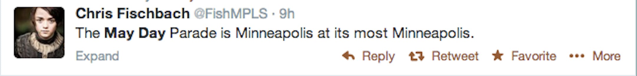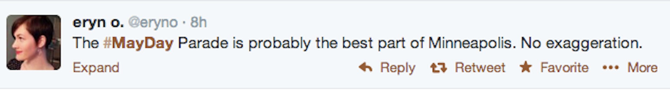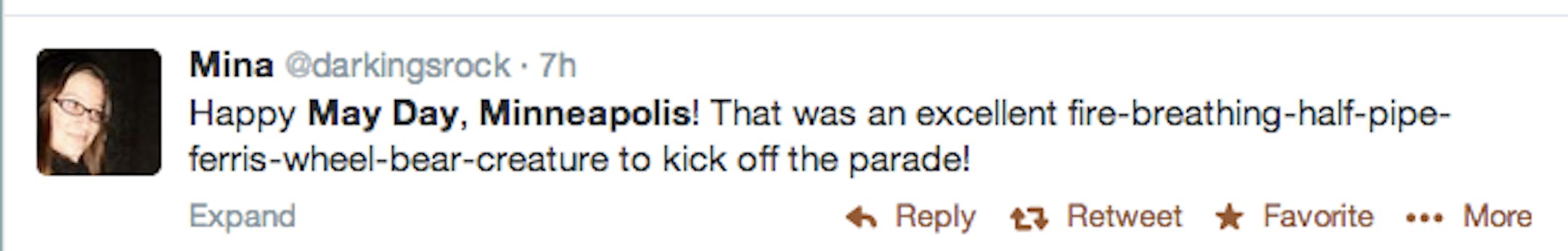 The artistry and attendance of the MayDay parade and festival may have changed over the last four decades, but its unique spirit hasn't. TPT has a great video from the first parade and festival in 1975. People interviewed for the video 40 years ago say they came out to celebrate working people, and the annual arrival of the sun.