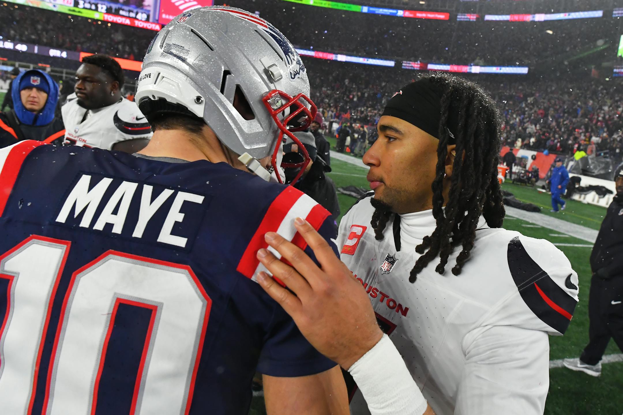 Maye finished 16 of 27 for 179 yards, but had an interception and fumbled four times, losing two in cold conditions in which snow and rain fell throughout. One of Maye's fumbles set up Houston's first touchdown.