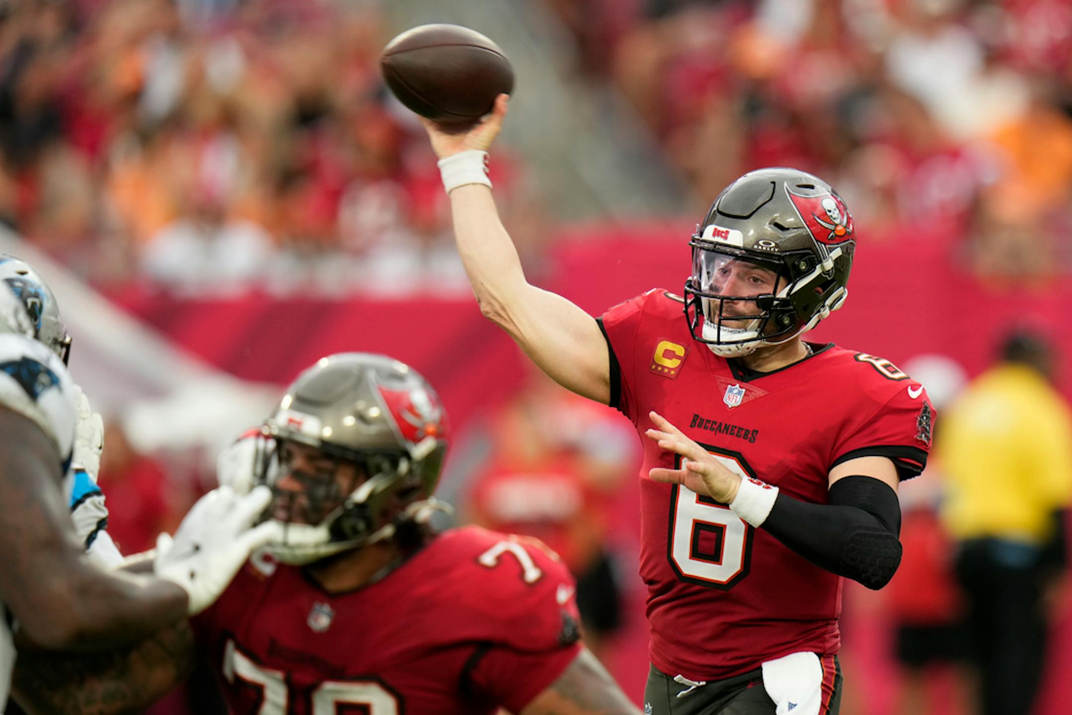 Mayfield threw for 359 yards and five touchdowns without an interception for the Bucs, the only team in the NFC that's made the playoffs each of the past four seasons.