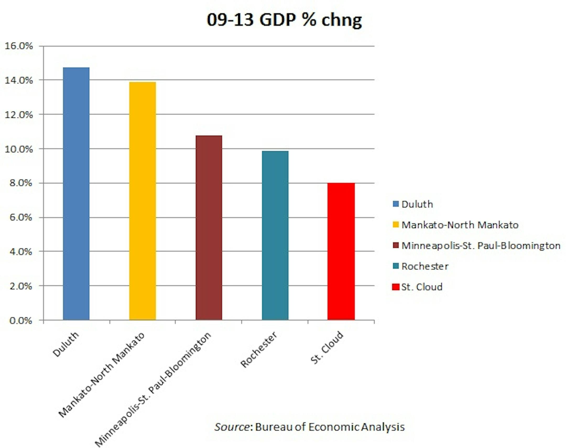 Real GDP for the metro area has grown since 2009 faster than any metro economy in Minnesota and nearly twice as fast as the national average of 8 percent.