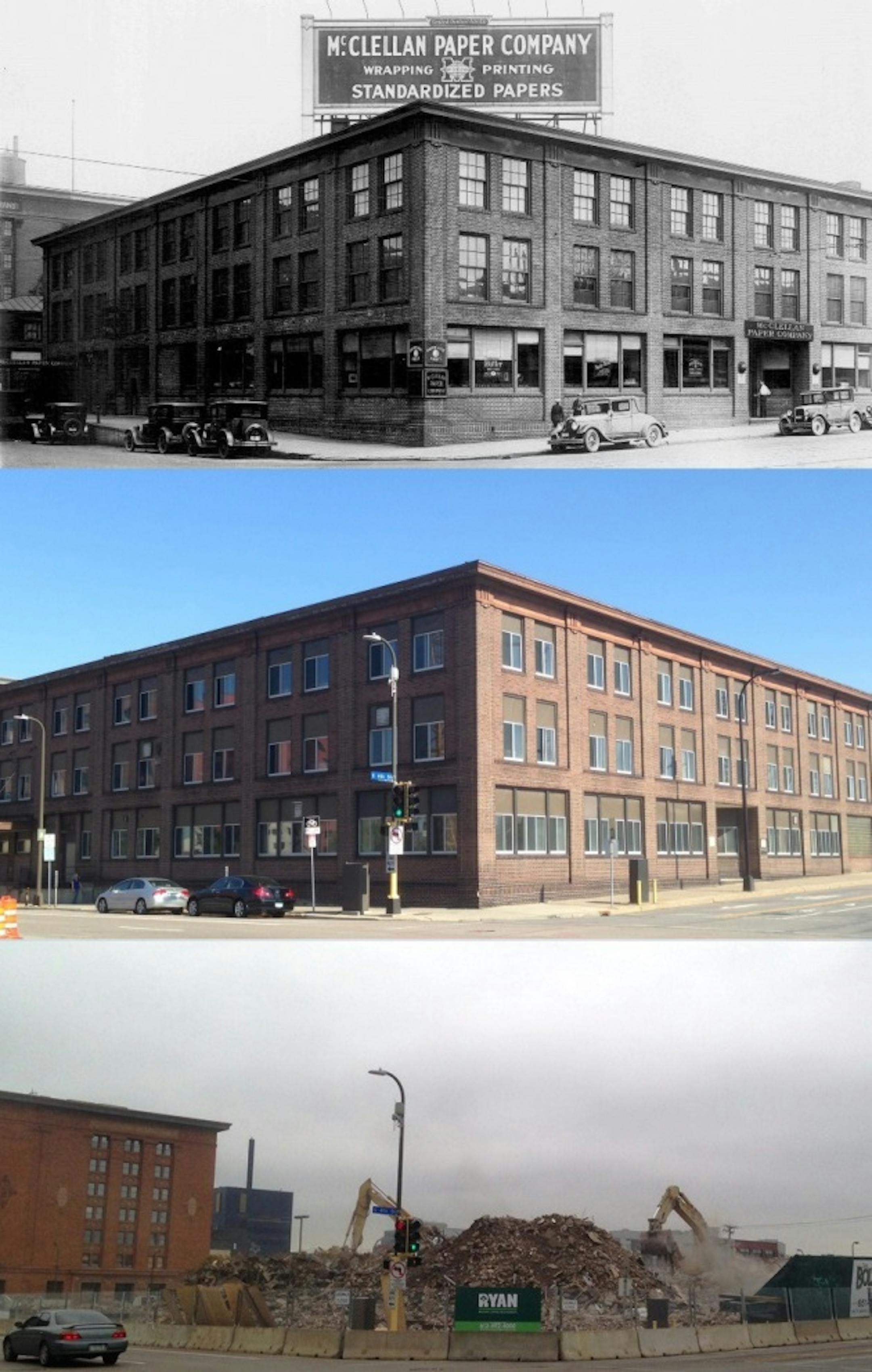 But that's precisely what occurred in downtown east last week, where the one-time home of the McClellan Paper Company was torn down after standing for 99 years at the corner of 4th Street South and Park Avenue.