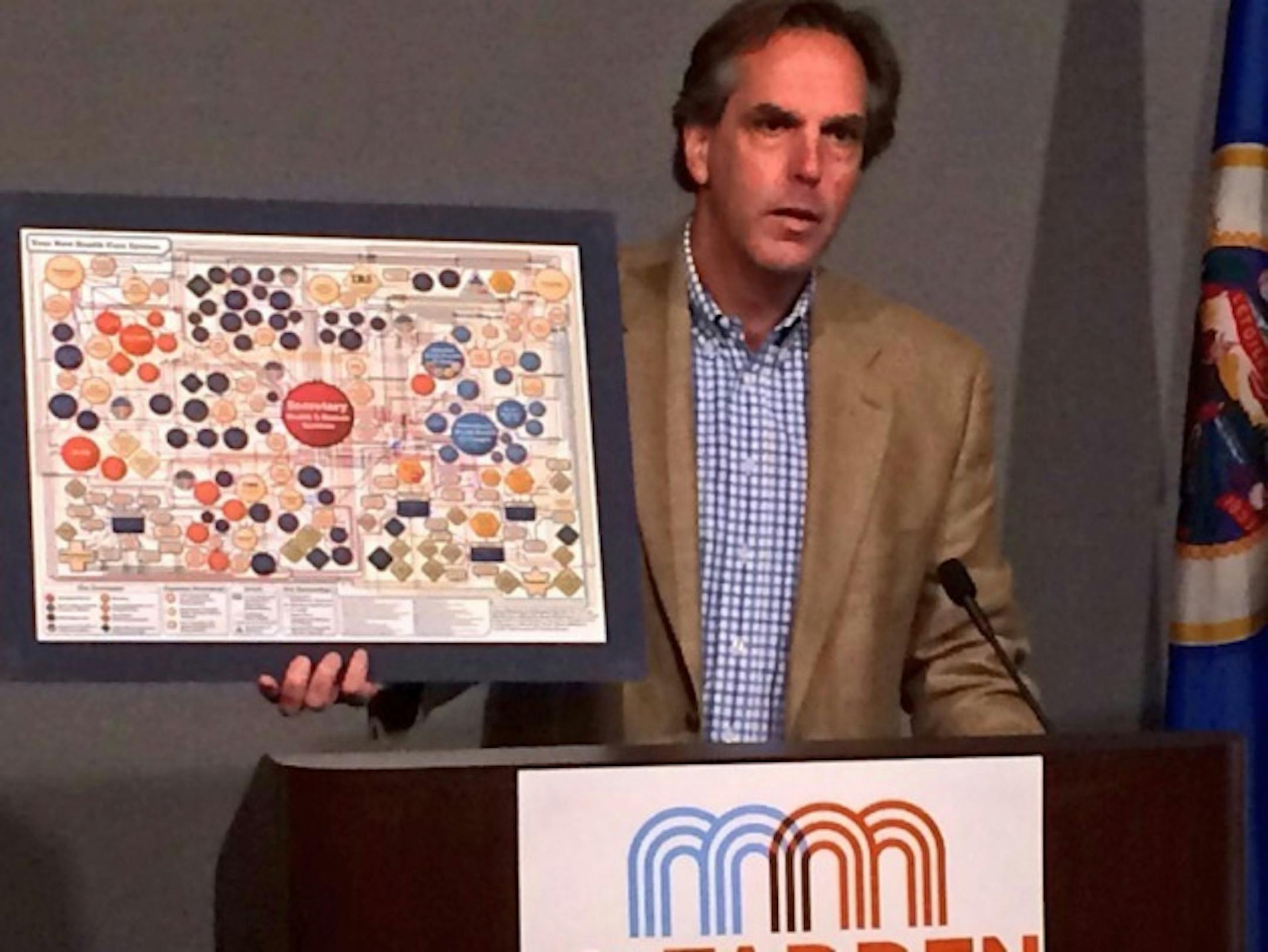 "I'm a businessman, and as a businessman I know that when someone provides 60 percent of the market and is the low-cost provider drops out of the program, you're going to see a significant increase in premiums. This doesn't work." McFadden said, pointing to a chart from the Hoover Institution that illustrated the tangle of functions that make up the ACA. "I'm very disappointed in President Obama and Sen. Franken because this program has been based on lies."