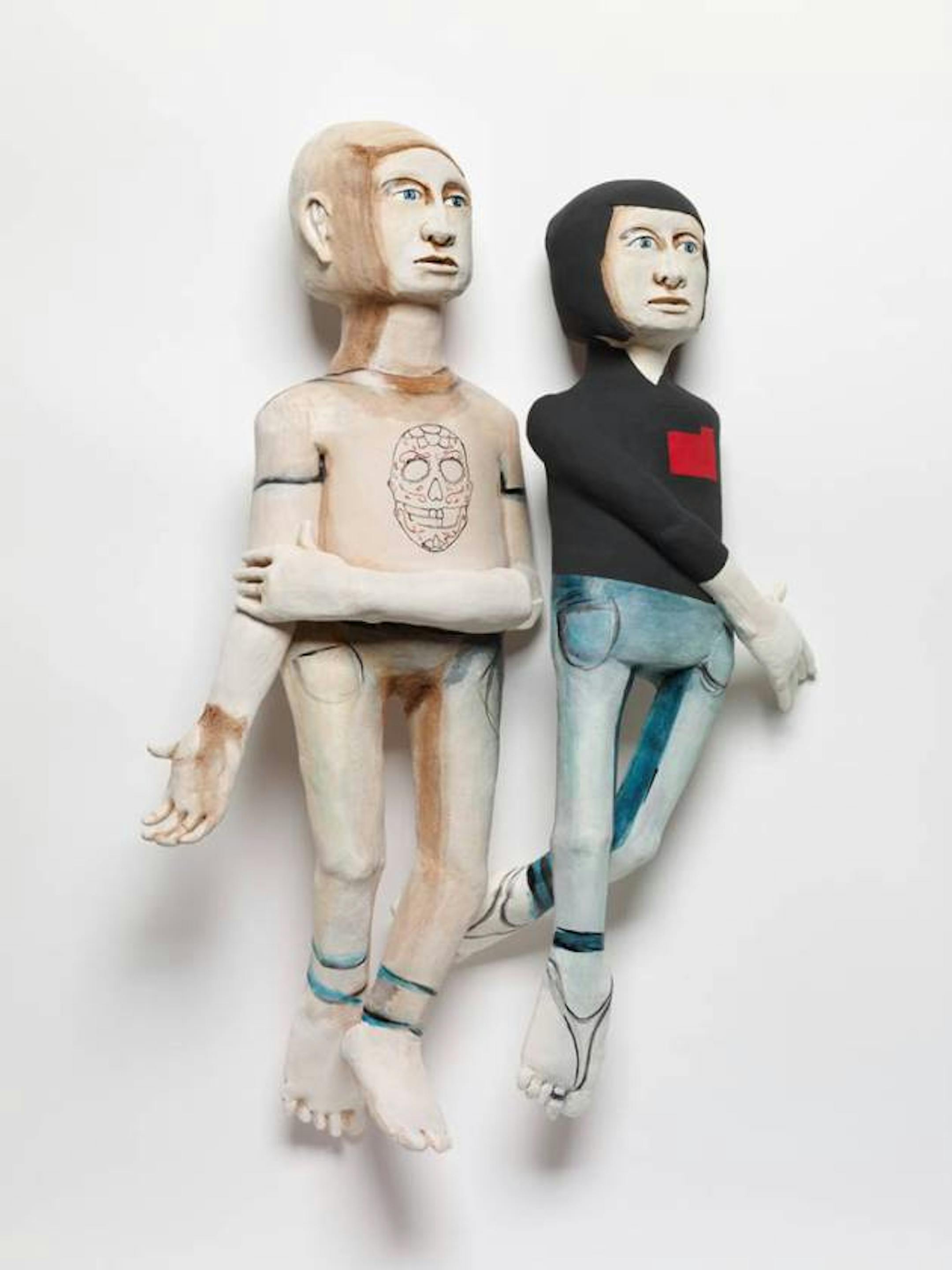 Since completing her BFA at Minneapolis College of Art and Design in 1998, Edith Garcia worked and exhibited in many locales before settling in London. Her doll-sized androgynous figures hang on the wall but seem to be performers in enigmatic little dramas of non-communication. Though their actions and expressions are inscrutible, they are strangely compelling characters whose silence speaks louder than words.