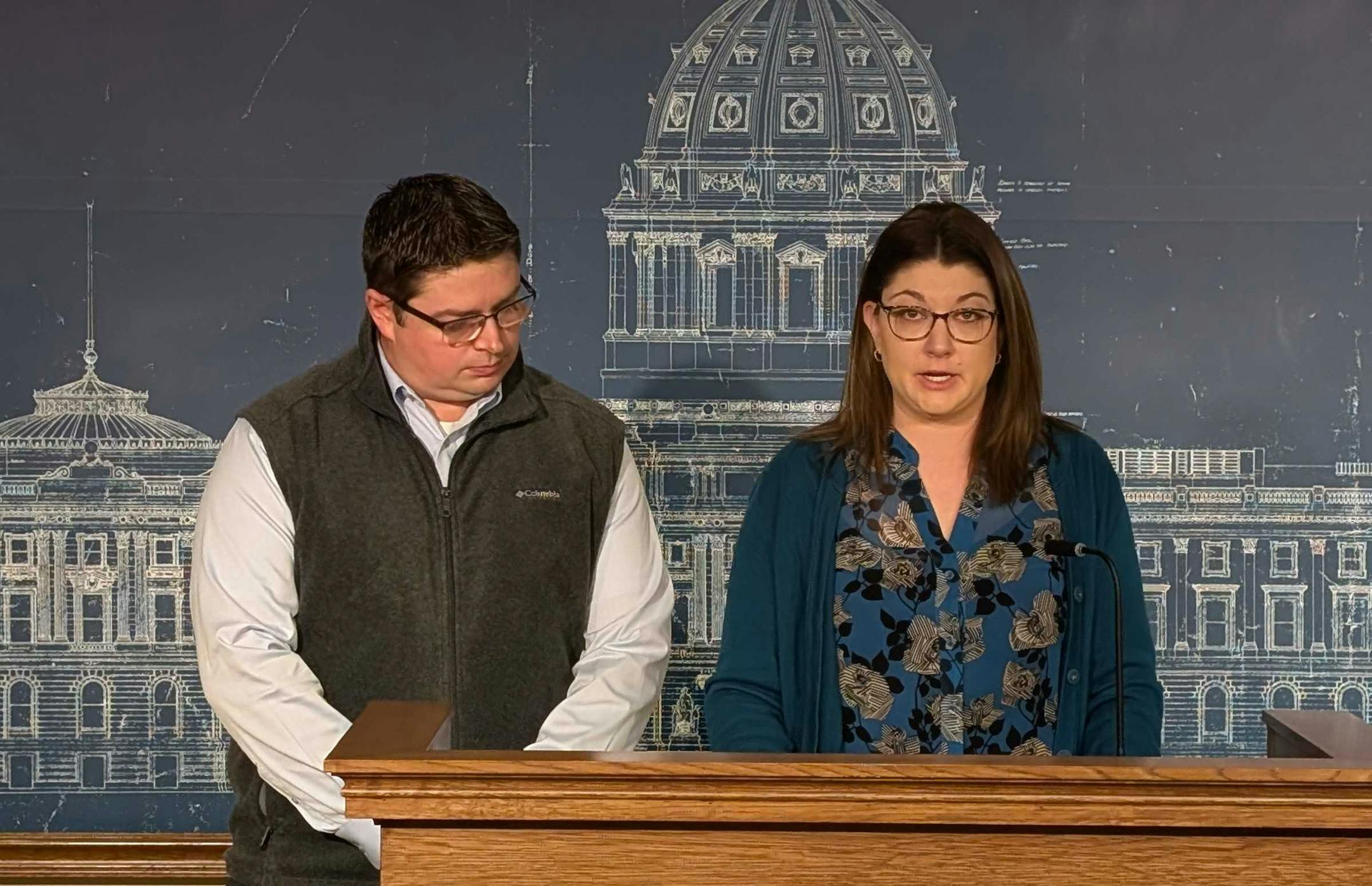 Brandon and Emily Walter joined with home health and disability advocates on Wednesday to protest Medica’s policy change, which will take effect in January.