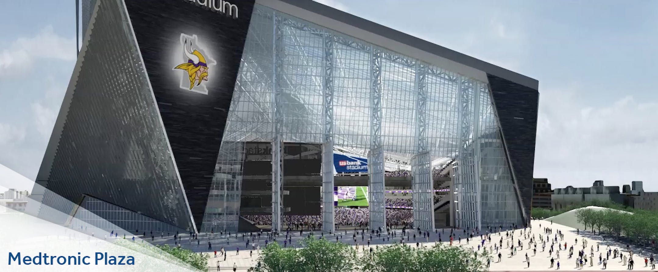 For Medtronic, the plaza naming deal brings new visibility among consumers, though its products are chiefly sold to doctors and hospitals. The Vikings estimate about 85 percent of all gameday visitors will enter through the plaza's five 90-foot-tall glass doors.