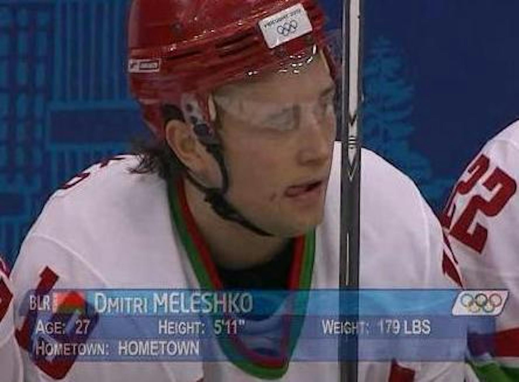 This amusing screen grab of Belarus hockey player Dmitri Meleshko was sent to us by Fasolamatt, who had a look at the ongoing Belarus/Switzerland qualifier online. What a lucky place to be from ...