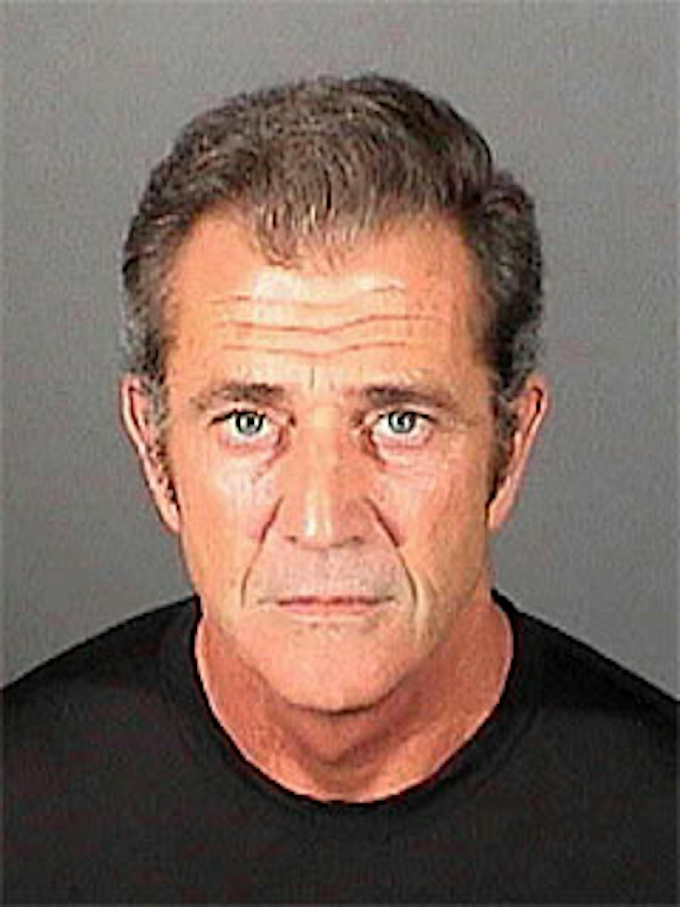Two photos of Mel running around the web today. First, his mugshot from last night's booking for misdemeanor battery: