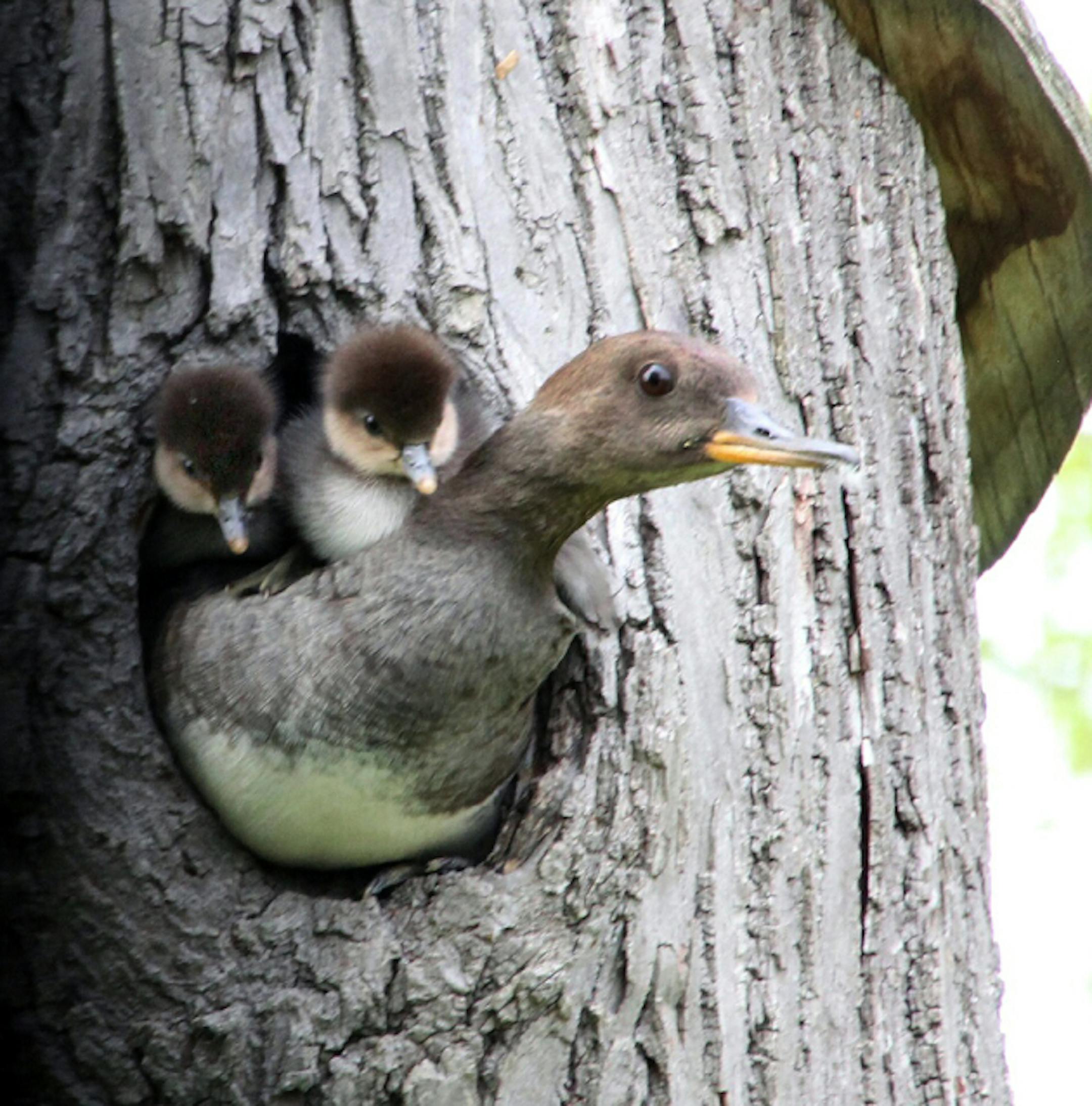 Merganser chicks were in a rush to leave the nest