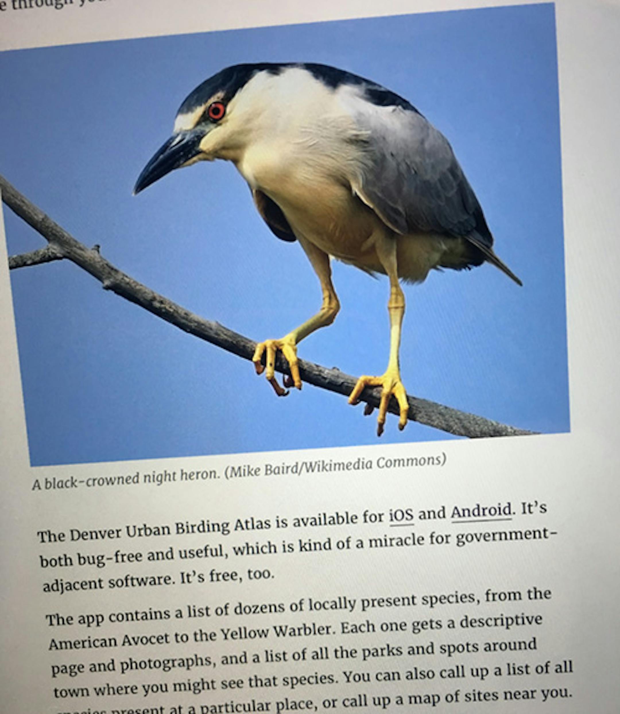 Nope. It's just been released by the City of Denver, working with a Colorado technology company for development. It's a perfect app for beginners who want to know what they might see and where. Actually, it would work for all of us. There's always a new place to visit.