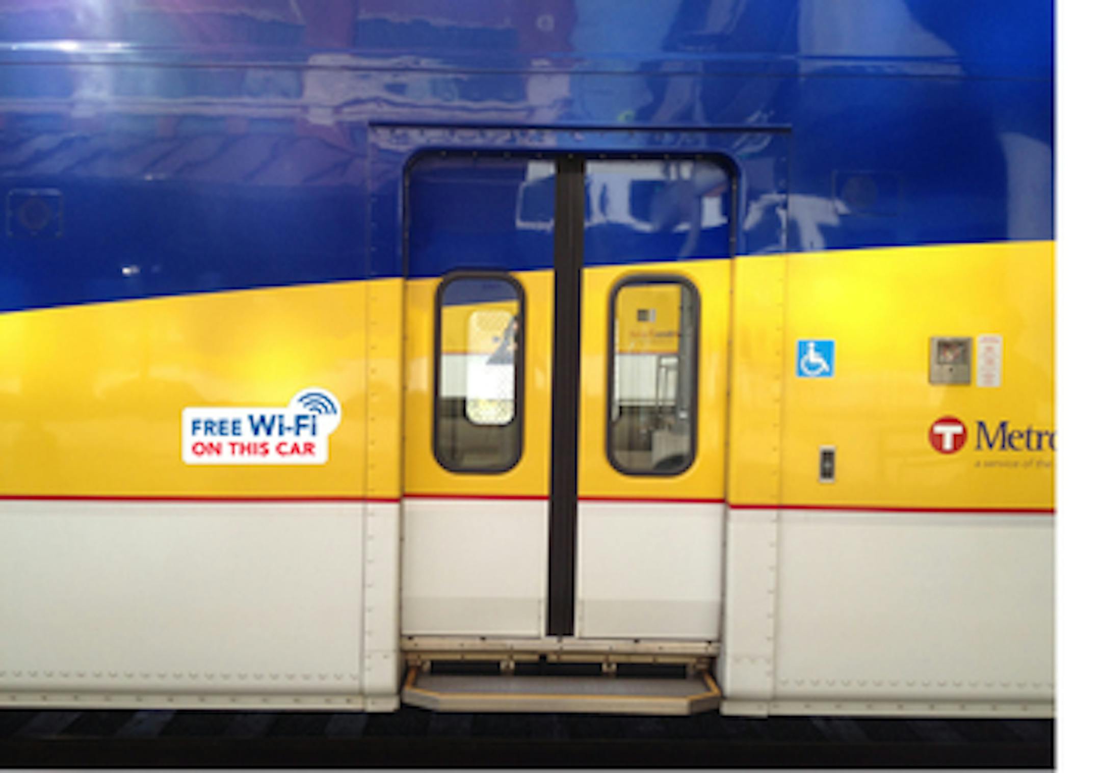 Trains often have four to six cars, so a a special decal that says "Free Wi-Fi on This Car" will be displayed both inside and outside the designated car. On most runs, the Wi-Fi service will be in what's known as the "Cab Car," the one furthest from the locomotive.