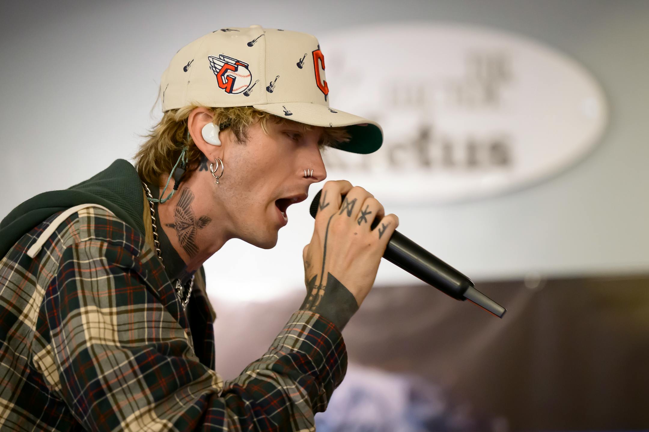 Standing atop a wooden stool accompanied by his five-man band, mgk, the Cleveland rapper/singer formerly known as Machine Gun Kelly, broke into “Miss Sunshine” inside Minneapolis’ internationally renowned record store.