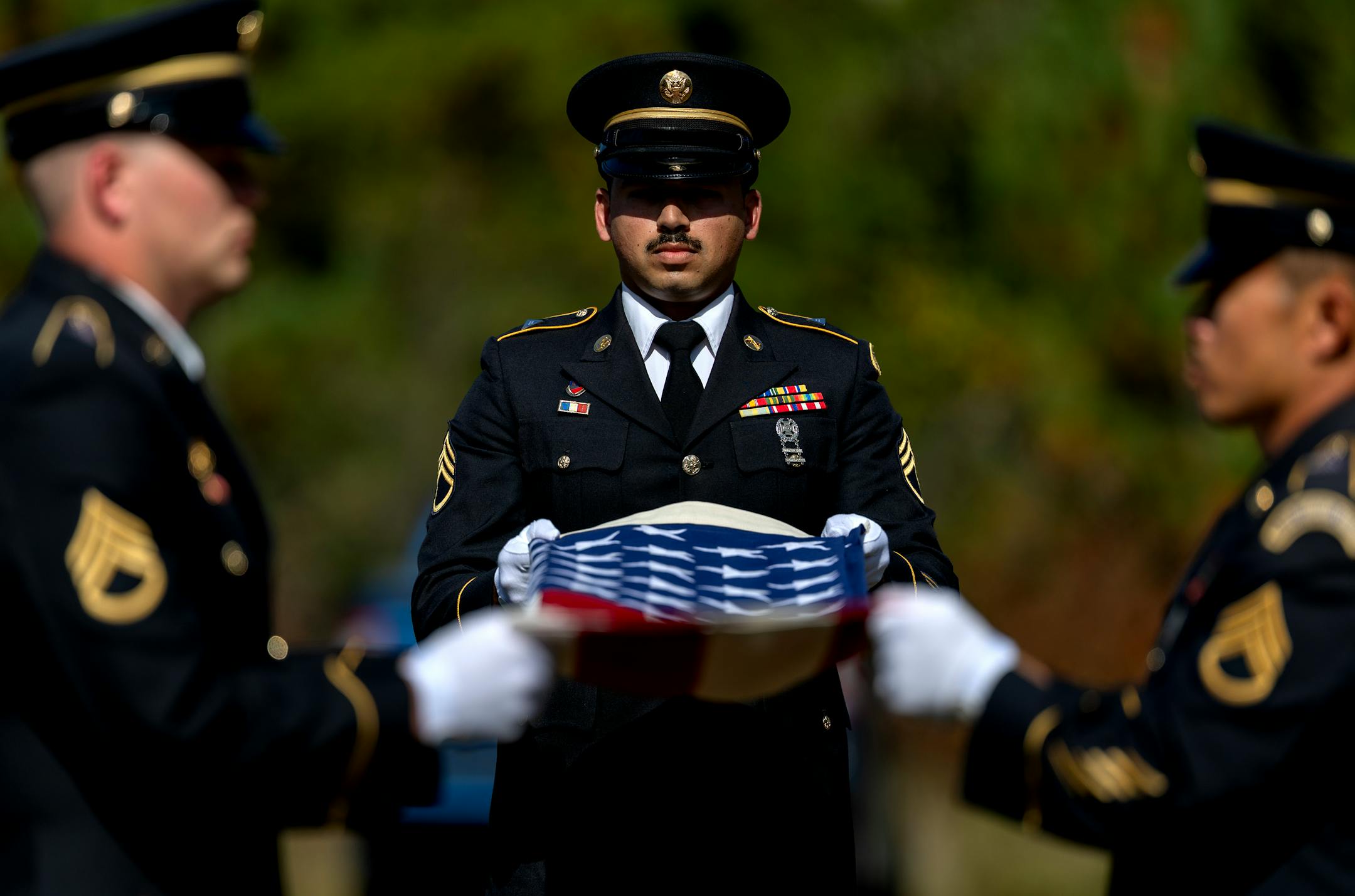 A photo of Gresens was seen again on Monday, next to a small coffin with his cremated remains, when after 75 years he was buried on top of his mother’s grave after a funeral with full military honors at Macville Cemetery just south of Hill City.