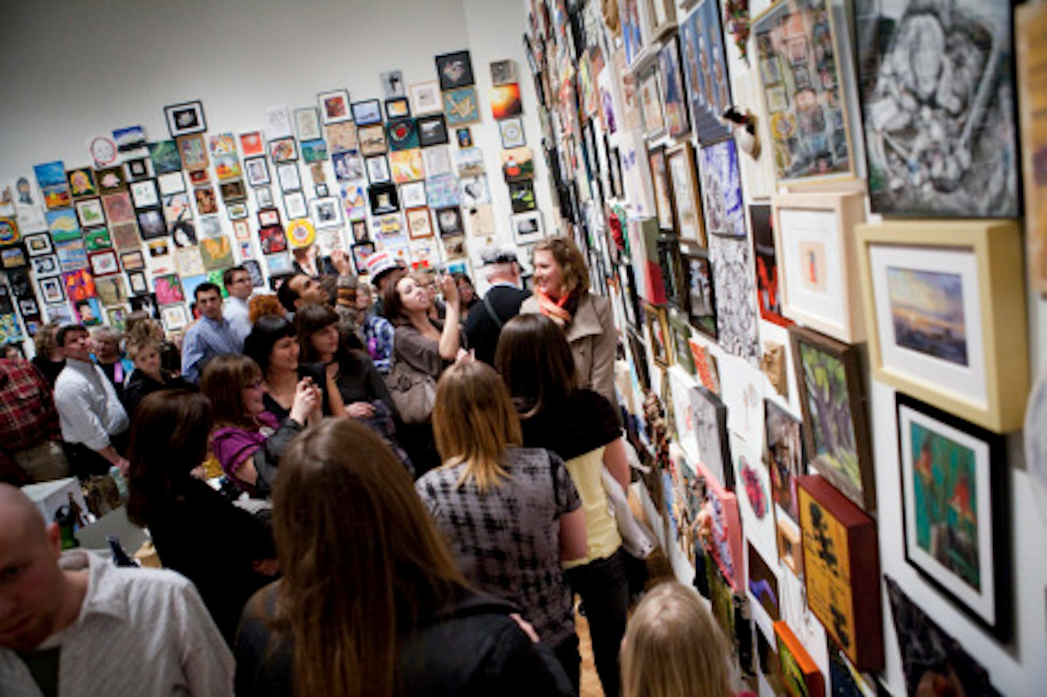 On Thursday night, the museum opened the show to the public -- and the public came out. A whopping 7,069 people packed the MIA to get a peek at the mini-masterpieces (paintings, drawings, photos, sculptures, etc.). The museum paired the "Foot in the Door" premiere with its monthly Third Thursday event, which included live music by Lucy Michelle and the Velvet Lapelles and DJ tunes by Jake Rudh.