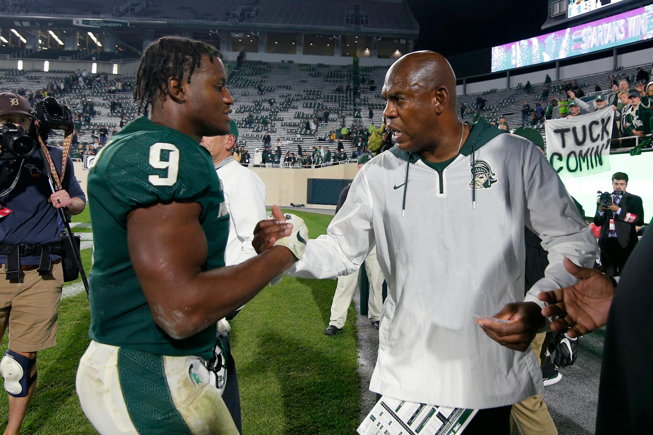 Up Interstate Hwy. 96 about an hour to the northwest, Mel Tucker held court, too. The second-year Michigan State coach played things close to the vest but didn't shy away from the significance of the contest.