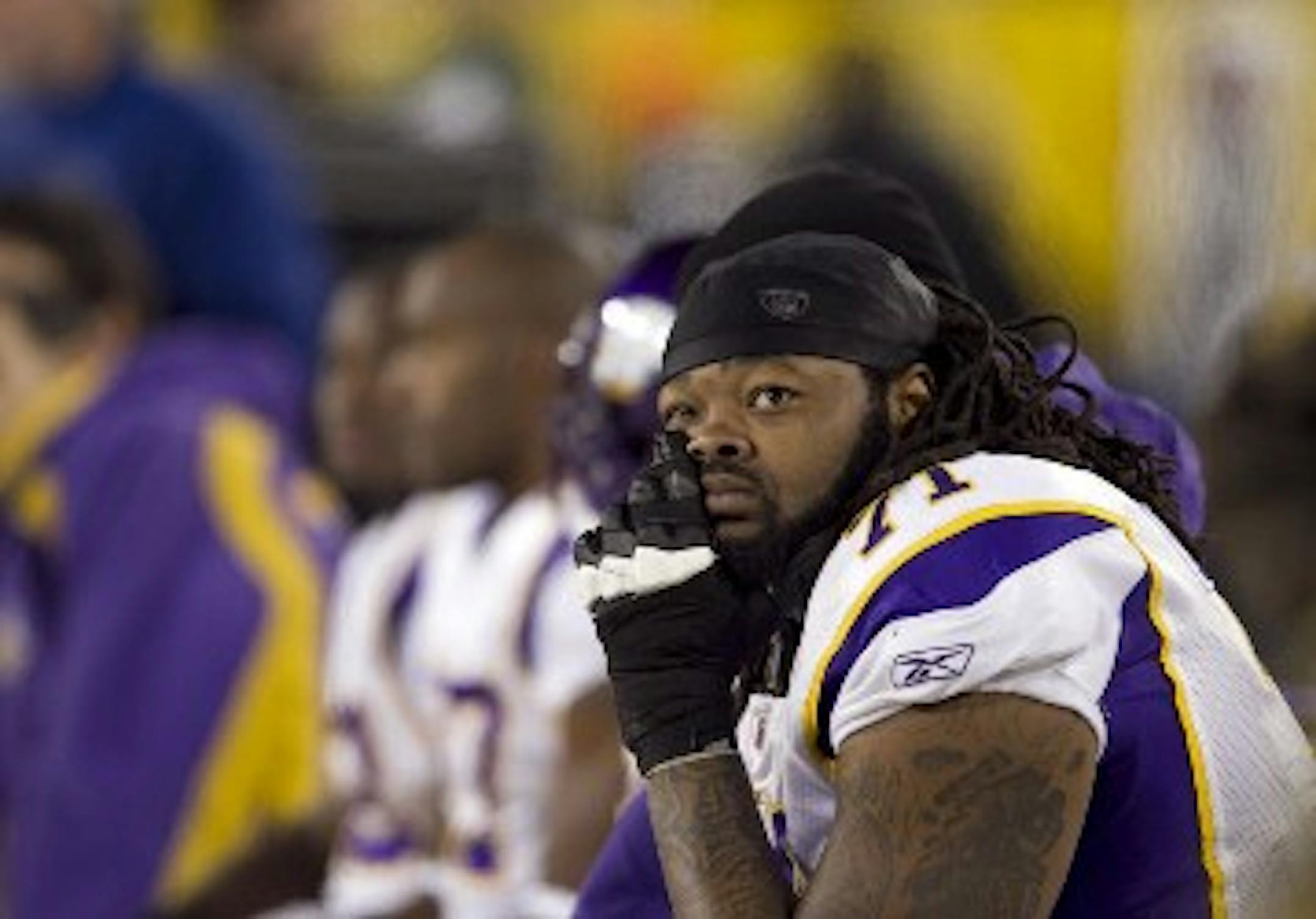 So: Gregg Easterbrook, writing for ESPN.com, has a little feature in the midst of a long column that tries to recognize the non-running back, non-quarterback who would be deserving, in his estimation, of the MVP award. It's more or less an "unsung hero" award. Only guys on playoff teams are qualified, which means YOUR VIKINGS had a crack at it. Anyway, he names his runner-up and winner thusly:
