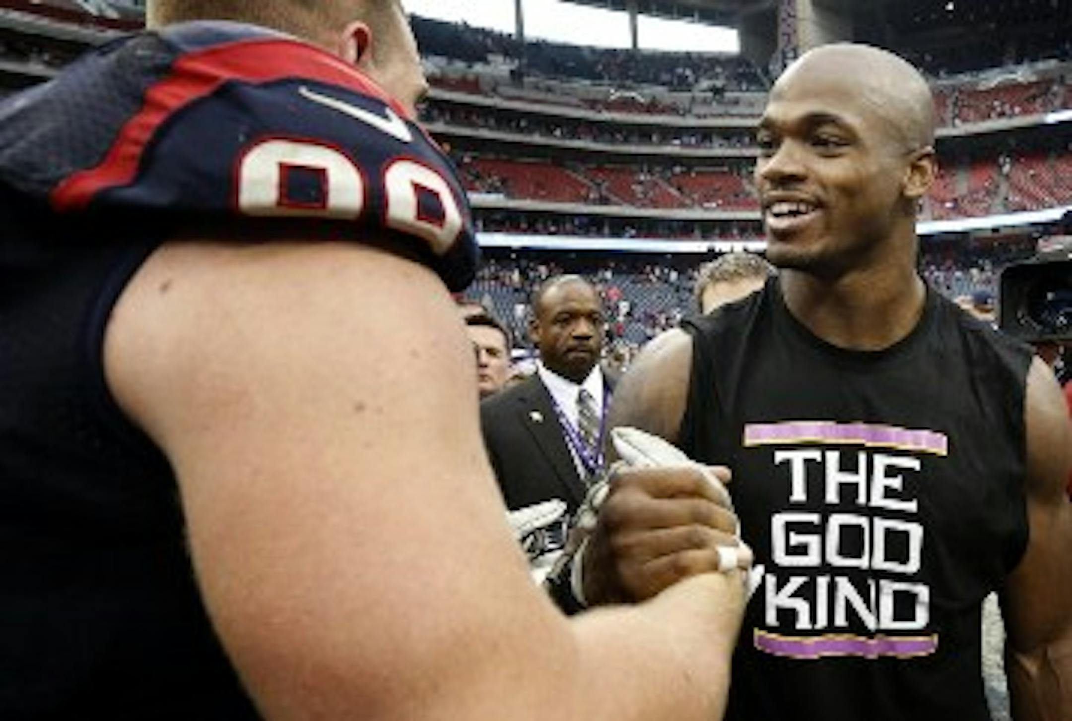 ADRIAN PETERSON: 30 percent. What he has done this season is nothing short of amazing. He has a very realistic chance at breaking 2,000 yards. He has at least a puncher's chance at setting the all-time rushing record. And he's doing it all on a majorly reconstructed knee. Crazy. Fantastic. He's been a joy to watch. The only thing keeping the percentage from being even higher is the Vikings obviously need more than him to win. In fact, they are 4-2 when he doesn't reach 100 yards and 5-4 when he does. AP has done all he can and more. But he's not the only thing this team has going for it.