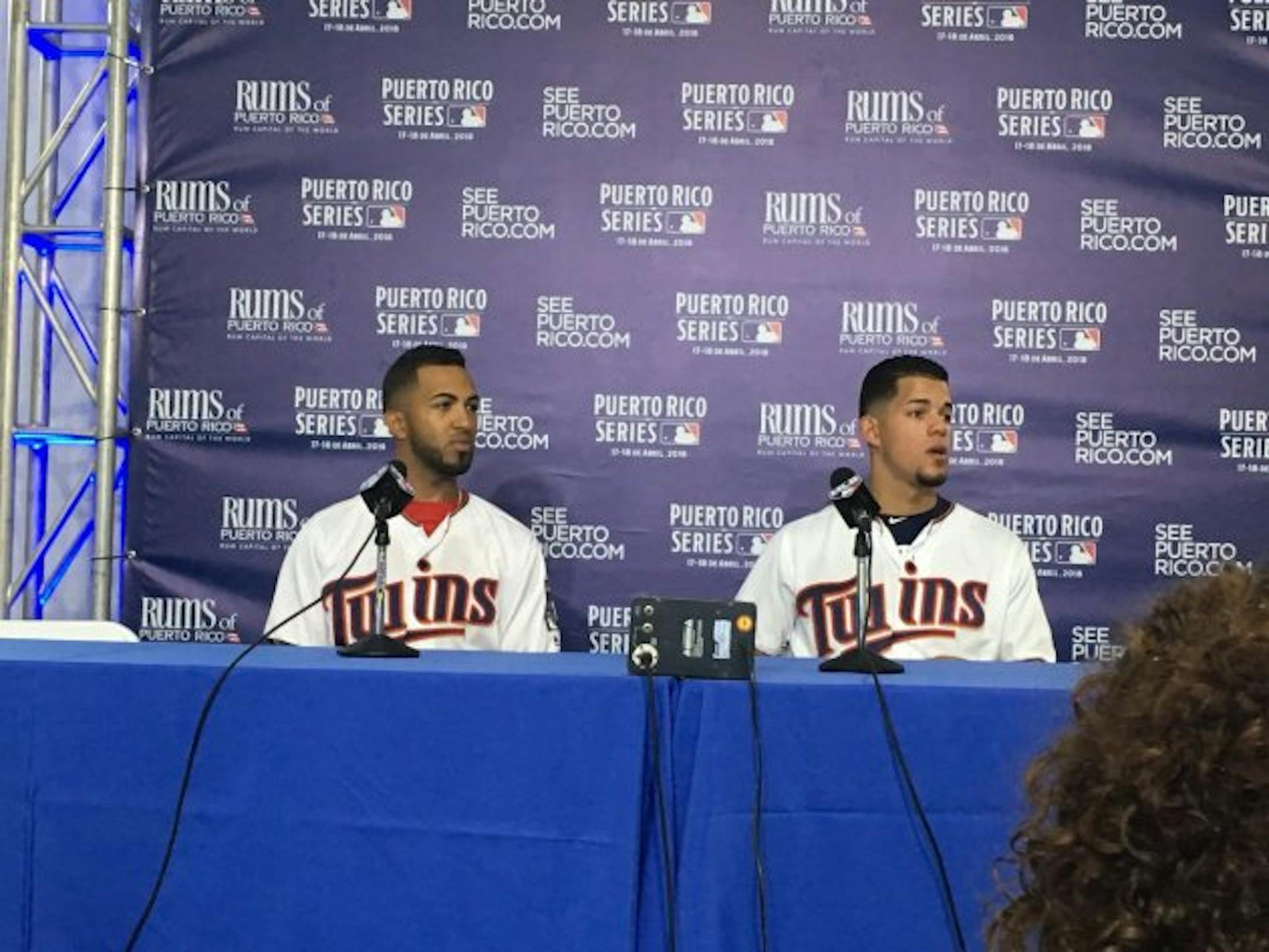 Eddie Rosario and Jose Berrios, Twins players from the island, had a pregame press conference at the stadium. Berrios will get the start on Wednesday, with Jake Odorizzi starting tonight.