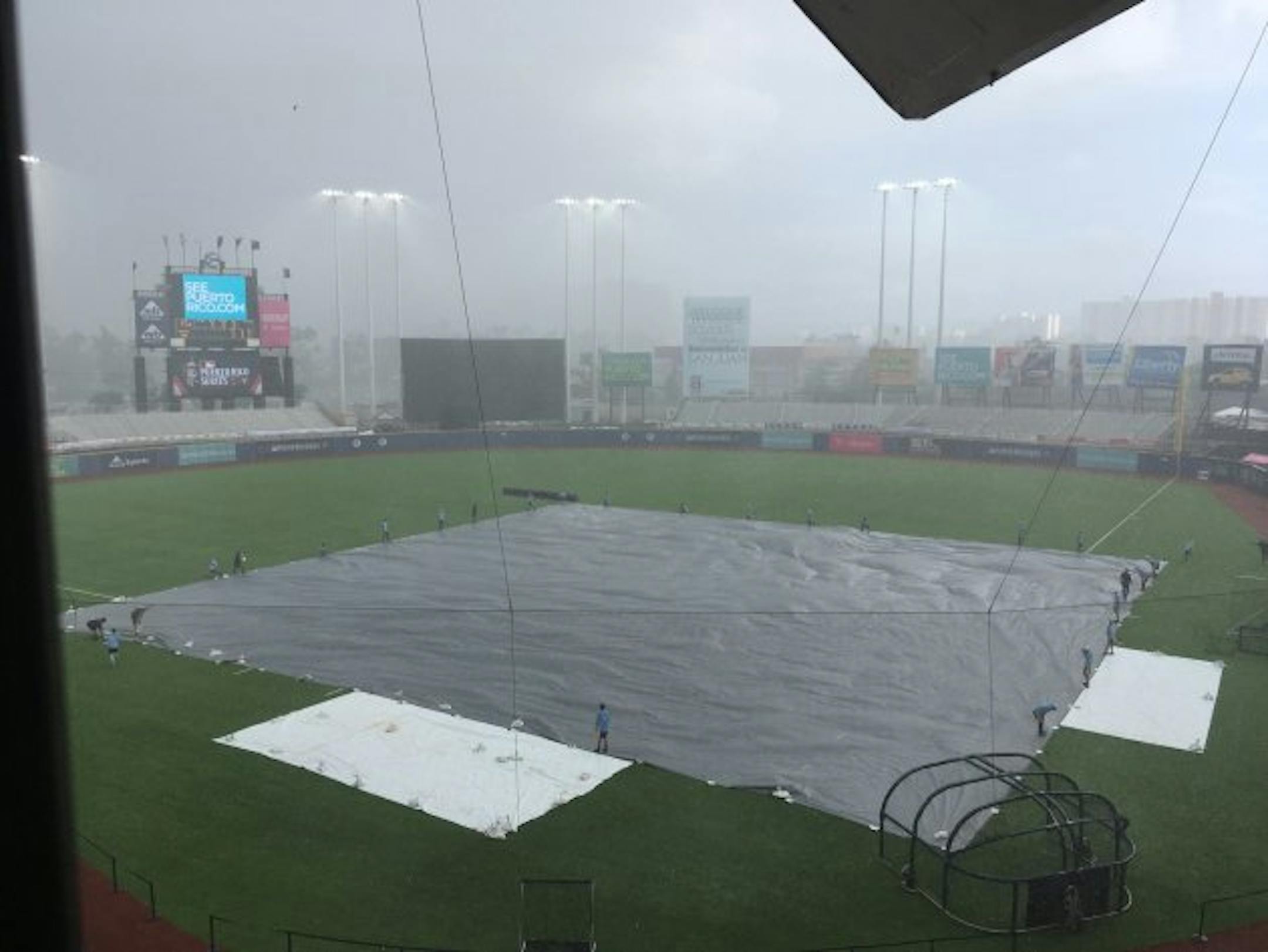 It was pouring at the stadium at 4 p.m. local time (3 in the Twin Cities) but it's expected to pass and we should get the game in ... it's scheduled for 6:10. Tomorrow's rainy forecast seems more troublesome.