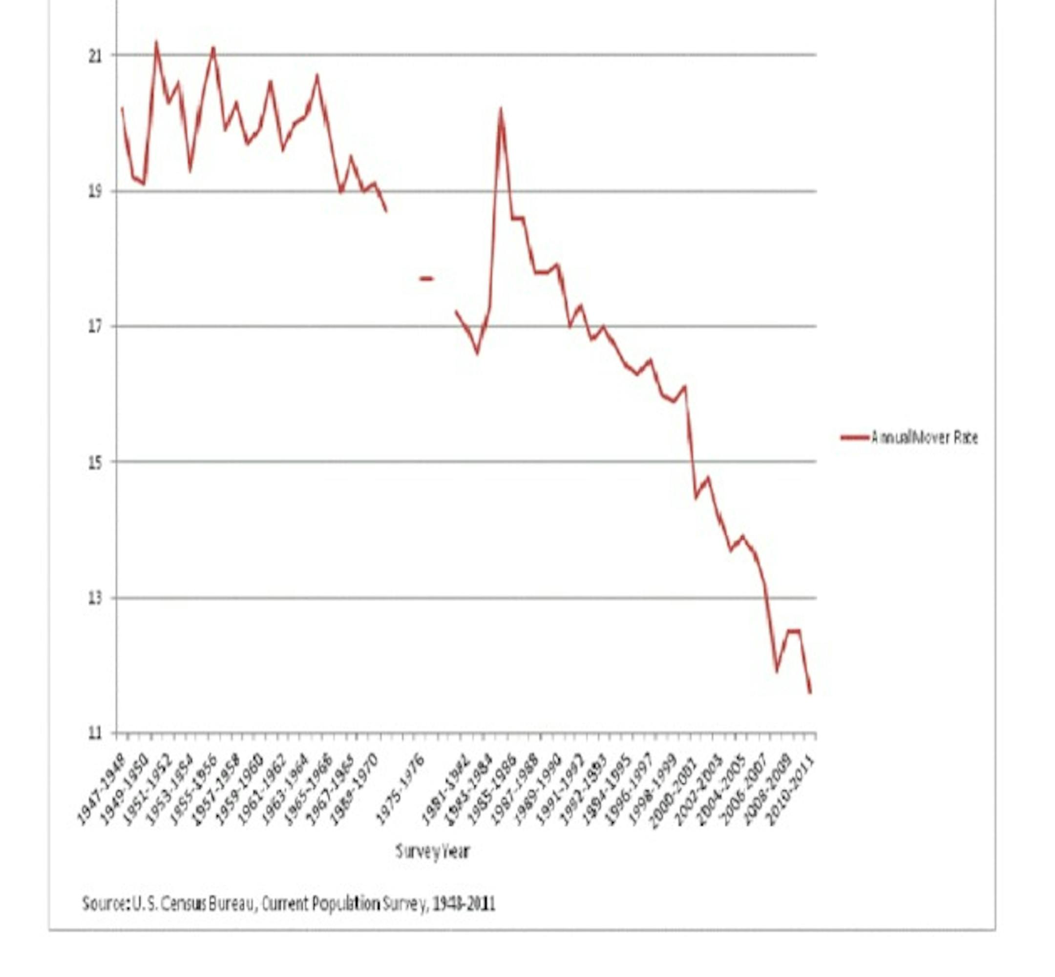 Of particular concern is the lack of state-to-state mobility among 20-somethings who recently graduated from college, said William Frey, a demographics expert from the Brookings Institution. The recession impacted their abilities to move from their parents' homes and find jobs, he said. "It's college graduates who fuel our economy ... They're the ones that follow the jobs."