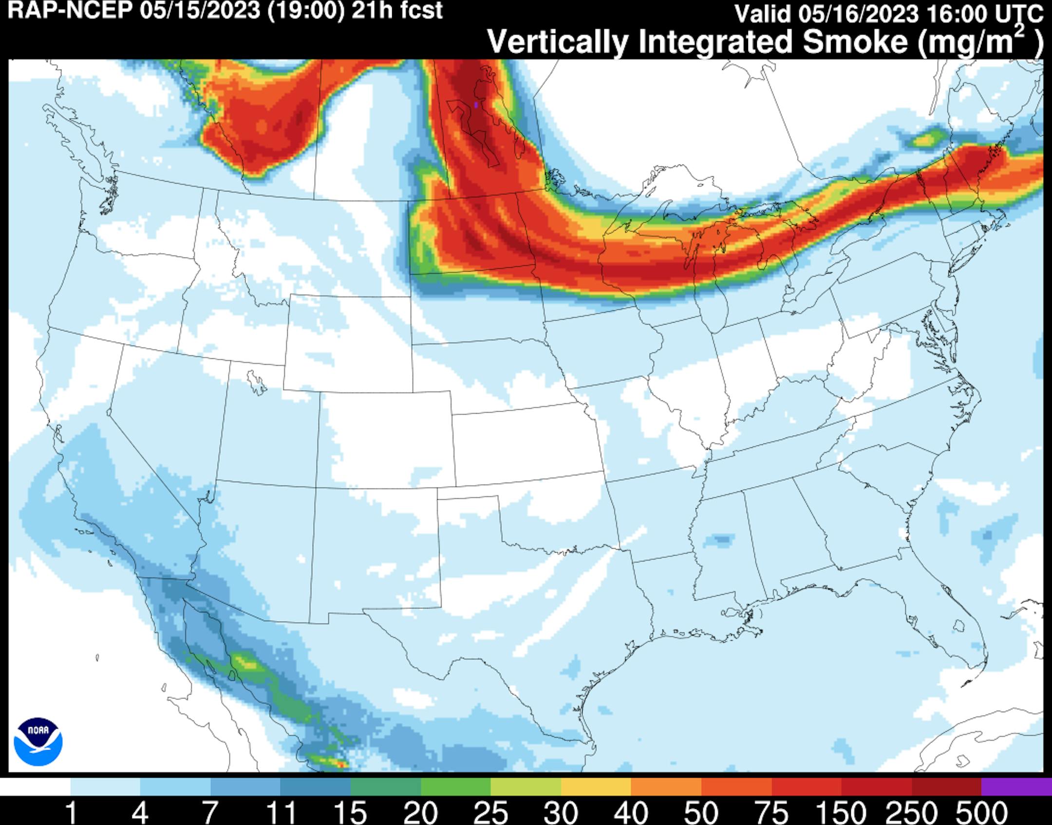 The smoke analysis by midday Tuesday shows widespread smoke overhead across the Upper Midwest and Great Lakes Region thanks to wildfires burning in Canada. This will make skies smoky and hazy through much of the day.