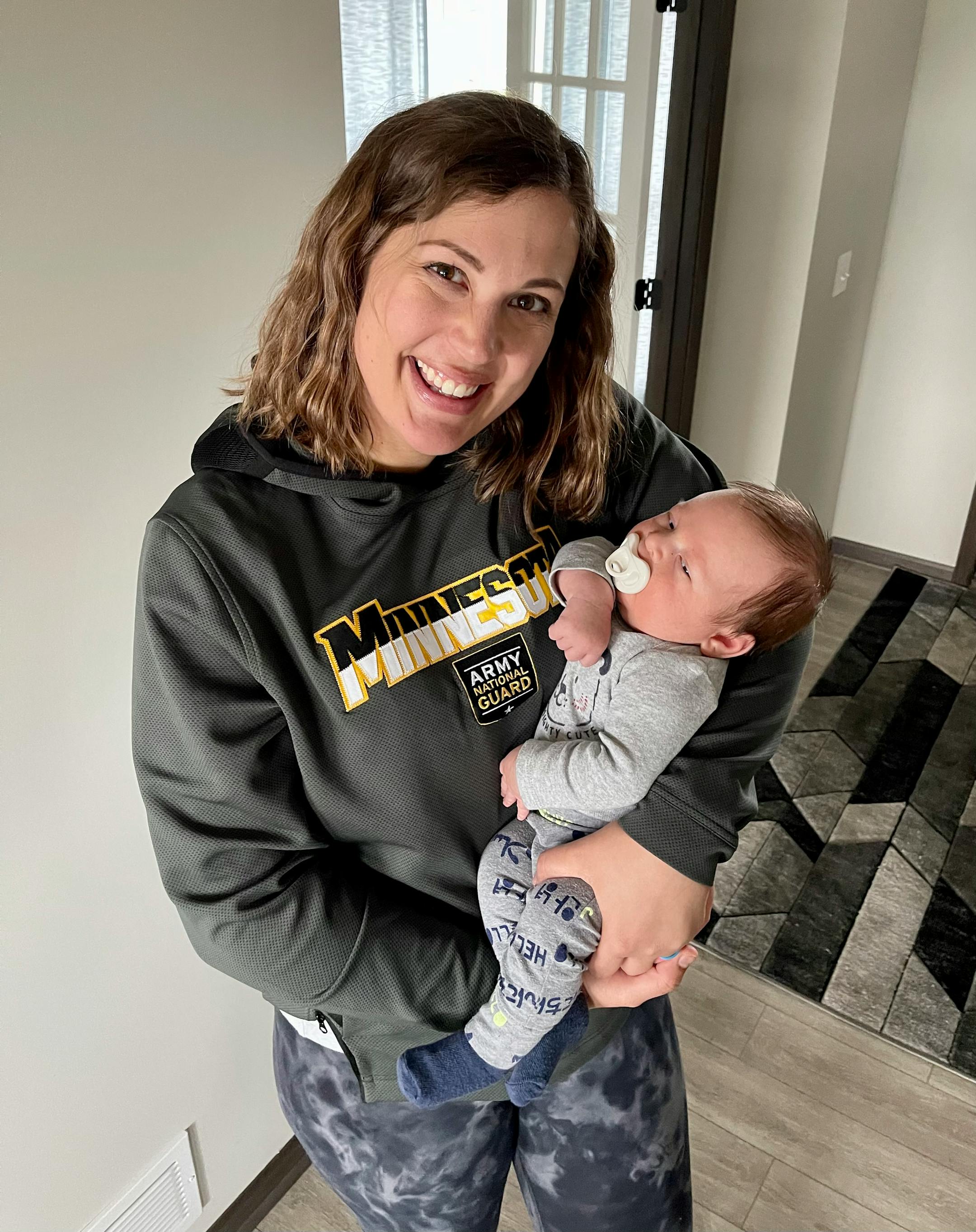 Meanwhile, Mariette gets 12 weeks paid leave. After that, she'll have six weeks of floating leave during Marcella's first year. She won't have to spend overnights away from her baby the first year, so during her first Camp Ripley drill weekend after she returns from leave in September, Mariette will do the first day in person and the remainder remote. There are other new benefits too: 12 weeks paid leave for fathers, improved lactation policies, and paid leave for traditional members' Guard weekends the first three months after having a child.