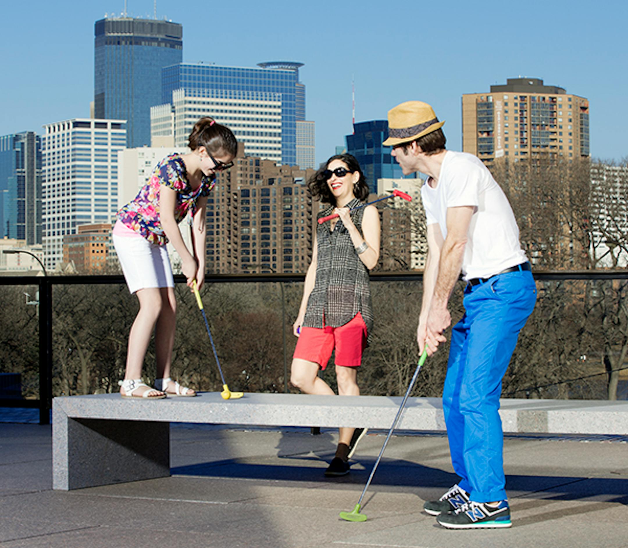 Walker Art Center's popular mini golf course will move from the Minneapolis Sculpture Garden to the center's rooftop terraces for the 2016 season which runs May 26-September 4. The artist-designed course will include the same type of daffy art-themed holes as previous seasons, but the new location will offer spectacular views of the Minneapolis skyline as well as such oddities as a fox lurking in a henhouse waiting to snatch an errant ball.