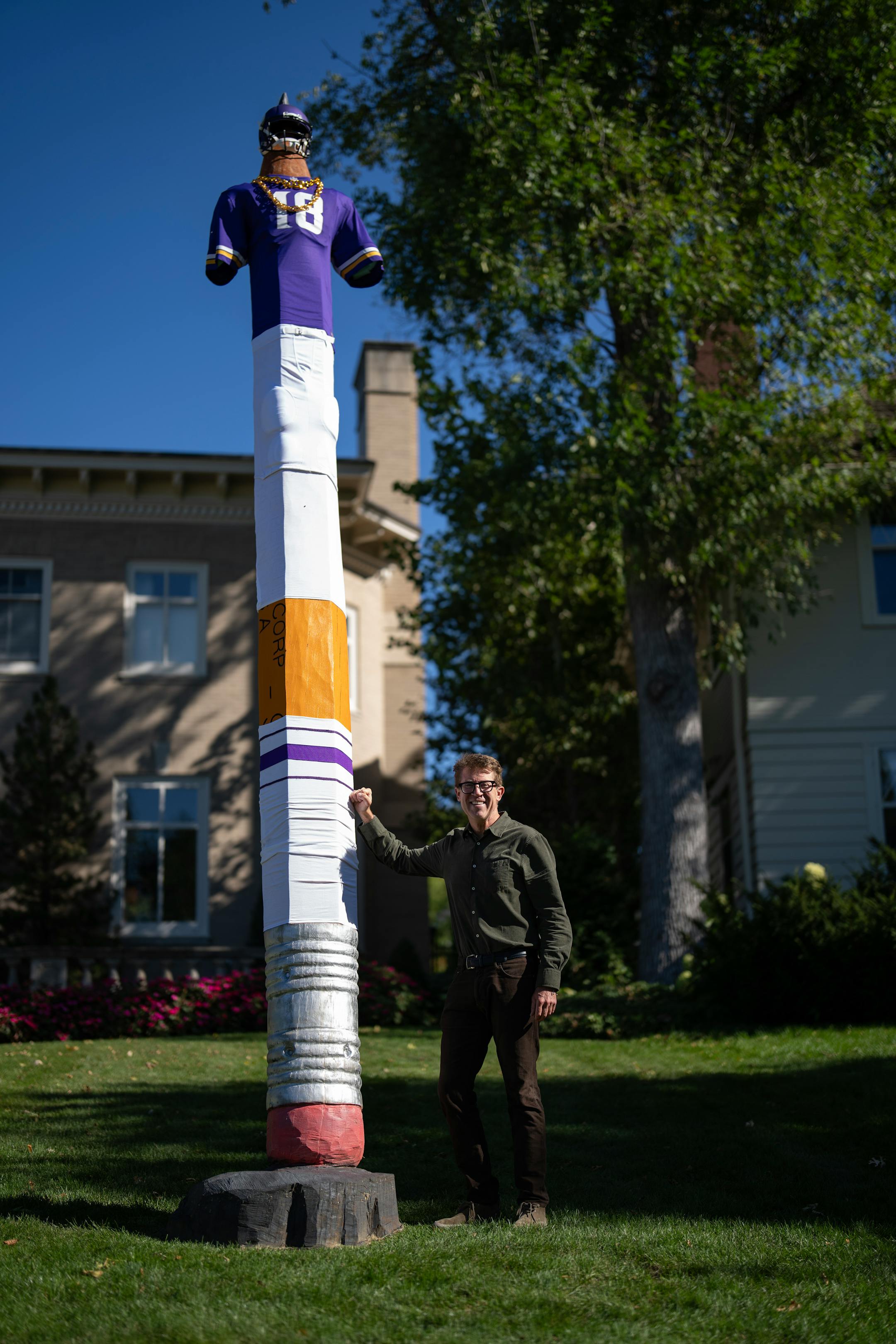 “The pencil watches kids play football over there,” said LOTI pencil co-creator John Higgins, pointing across the street. “The pencil loves the Vikings.”