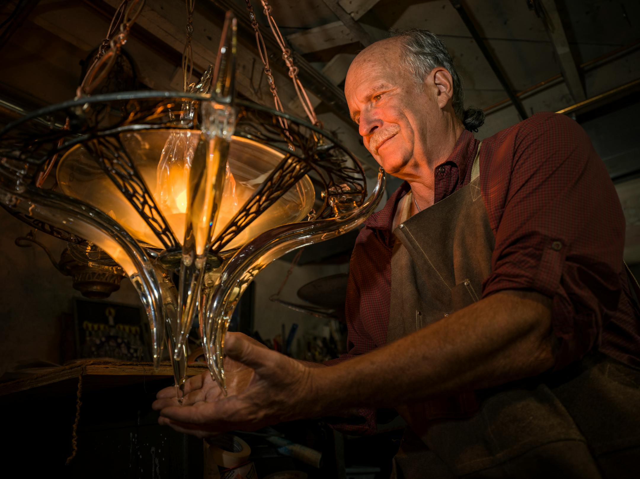 The lights he creates in collaboration with glass blowers and metal and bronze workers shine in more than 175 congregations around the world, including in several Twin Cities synagogues. Now his lights are shining in the show, "From Darkness Into Light: Claude Riedel and the Art of the Ner Tamid," which runs through March 27.