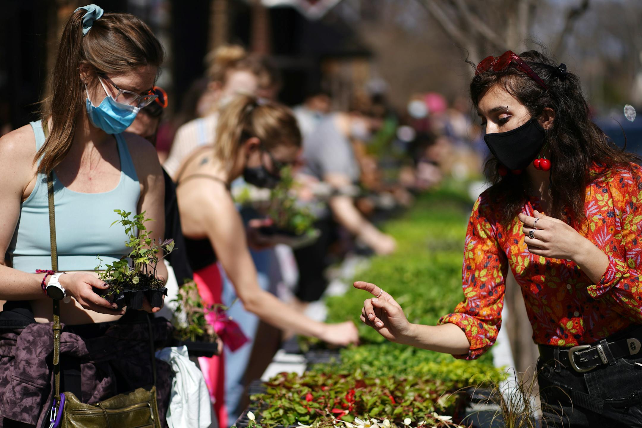 "None of these will wind up in the dump," said LeBeau, 24, gesturing to tray after tray of vegetable seedlings, tiny plugs of herbs and flowering annuals placed on portable tables and available, free, for the taking.