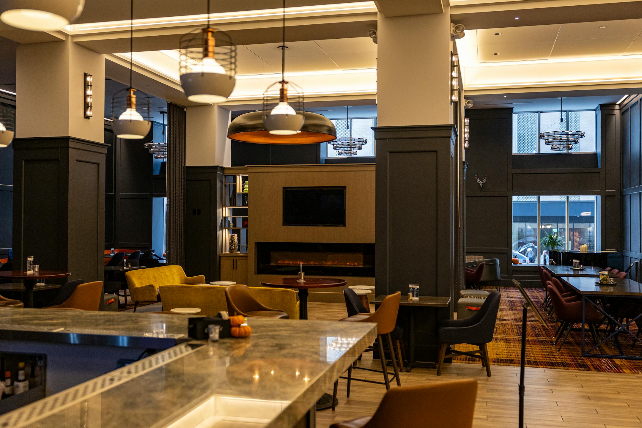 The new lobby of the Hotel Indigo in the relaunched Northstar Center (618 2nd Av. S., Mpls.) might surprise a hotel visitor from 100 years ago. A big hotel, and such a small lobby. Grand hotels had grand spaces, no?