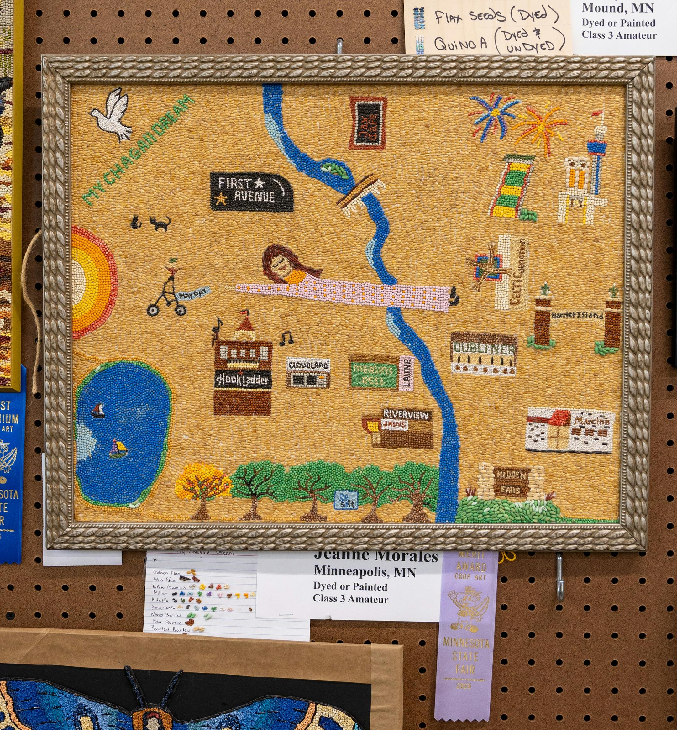 “Crop art engages with this really rich tradition of mosaic and beadwork and embroidery that exists in all cultures in perpetuity,” Olmsted said. “It derives from this really rich artistic tradition, but then it’s this hyperlocal Minnesota form.”