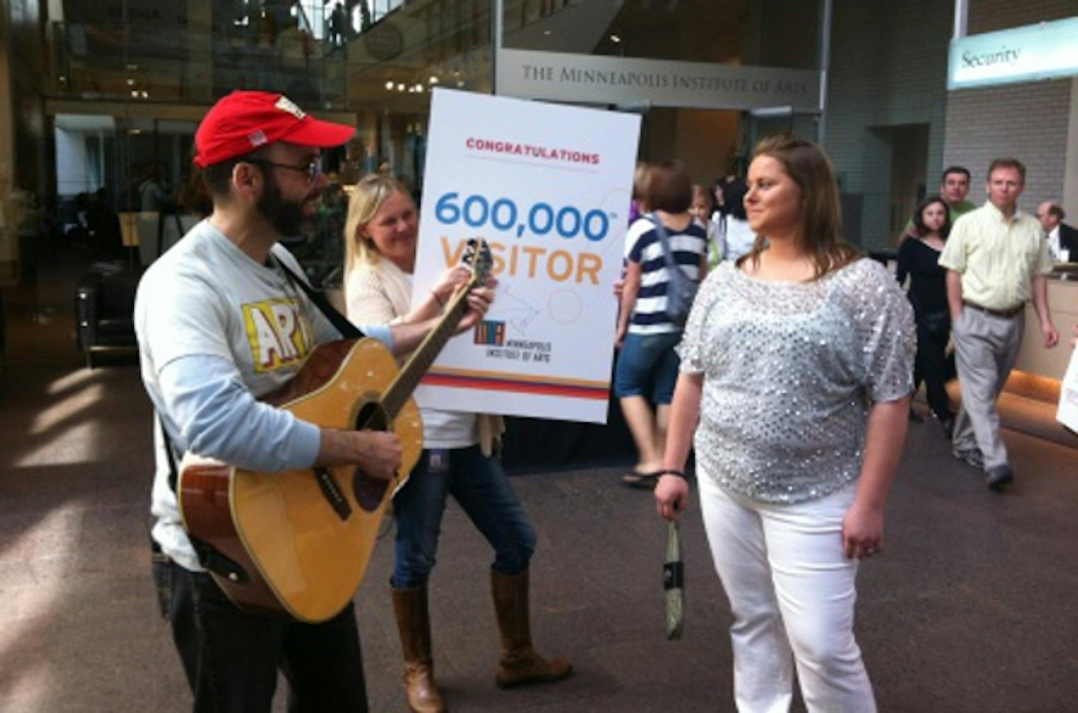 The 600,000th visitor to the MIA this fiscal year, being serenaded Sunday at the Minneapolis Institute of Arts.
