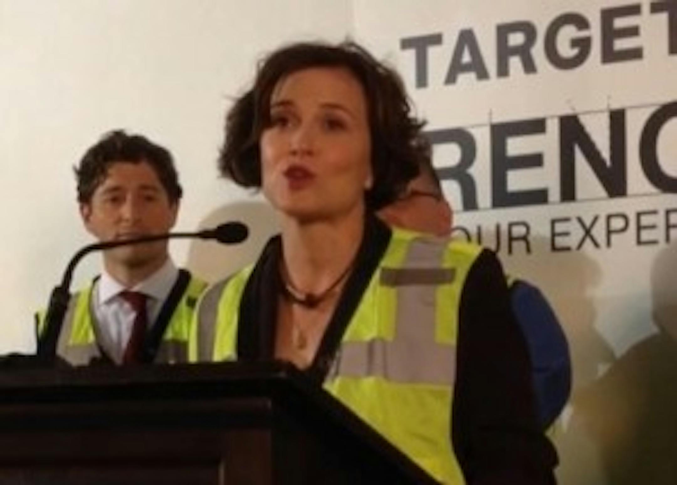 Minneapolis Mayor Betsy Hodges was among the officials on hand for a ceremony Wednesday at the outset of Target Center renovations. She swung a golden sledgehammer as part of a symbolic demolition of an area that will become the new West Club in the building, which is getting $100 million worth of improvements. (She wanted to keep the sledgehammer, which I totally would have wanted, too. And she did get to keep it).