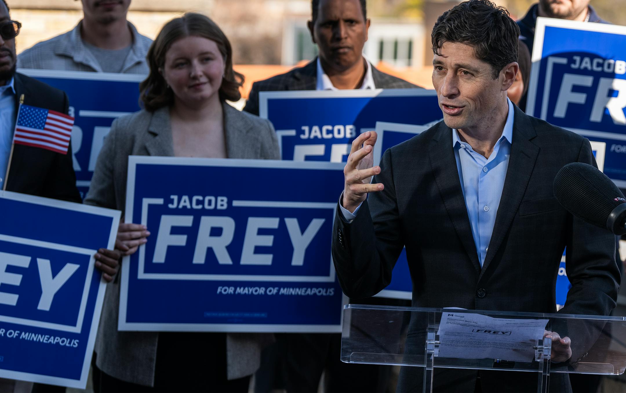 Minneapolis Mayor Jacob Frey delivered two victory speeches on election night earlier this month: One to a mostly white crowd, and another to a mostly East African audience, where he briefly spoke in Somali.